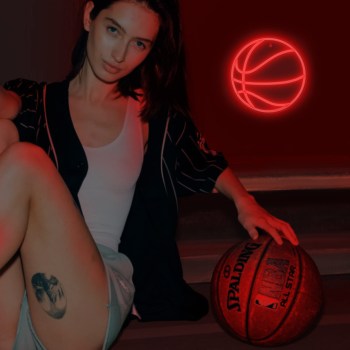 Lumoonosity Basketball Neon Sign - Red Led Light For Game Room Decor, Cool Basketball Wall Art