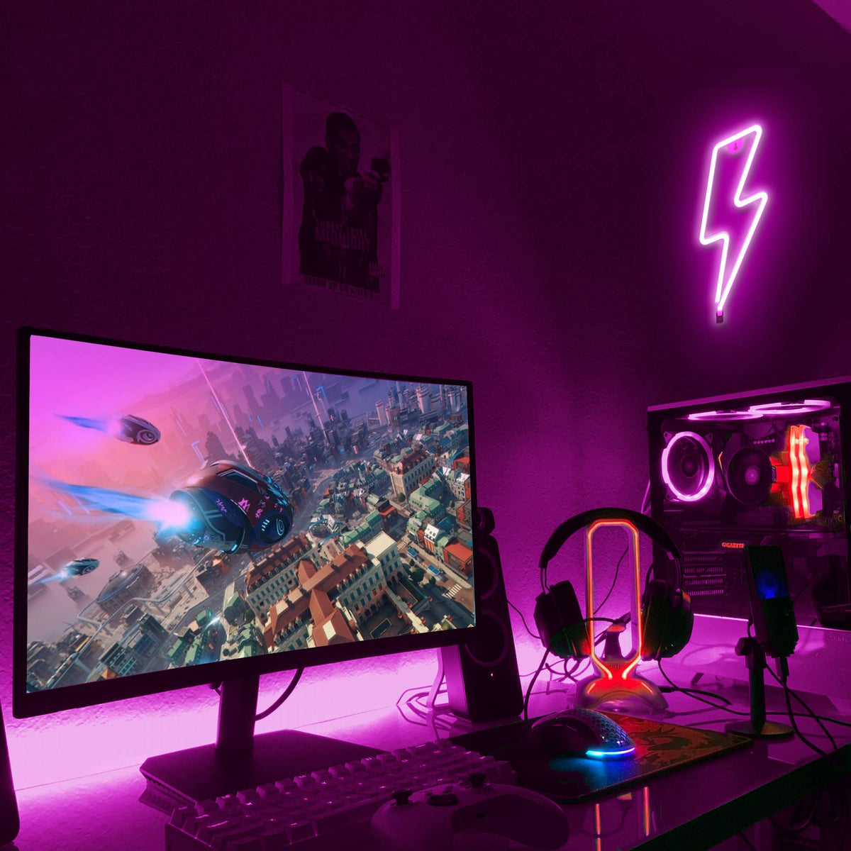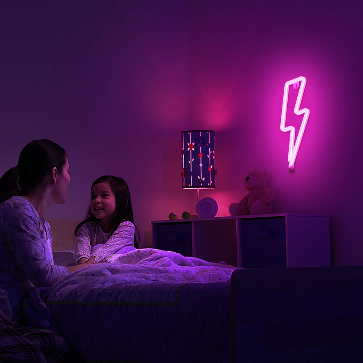 Lumoonosity Lightning Bolt Neon Sign - Usb Powered Led Wall Decor, Pink Light For Bedroom & Gaming Room