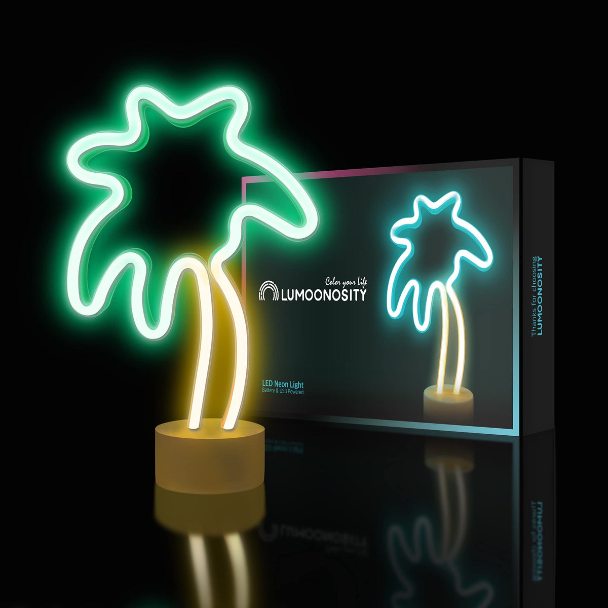 Lumoonosity Palm Tree Lights - Green & Yellow Palm Tree Neon Sign For Bedroom, Game Room - Battery/Usb Powered Coconut Trees Neo