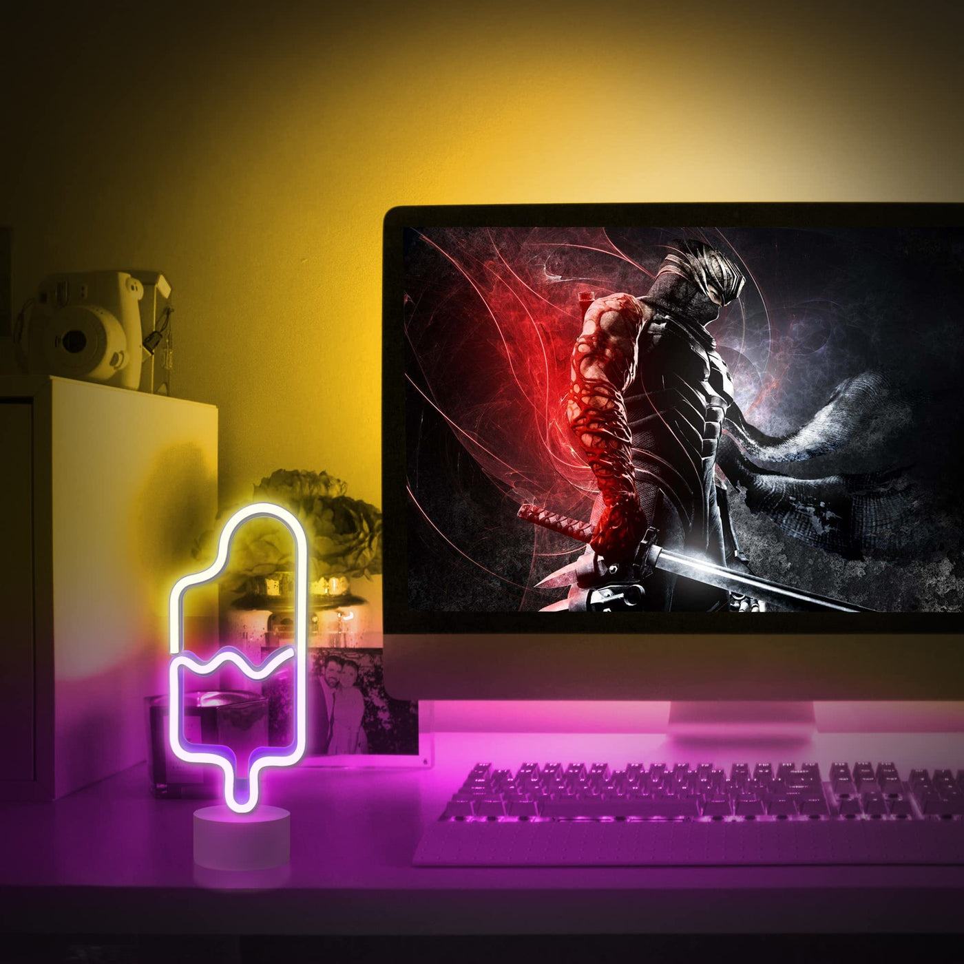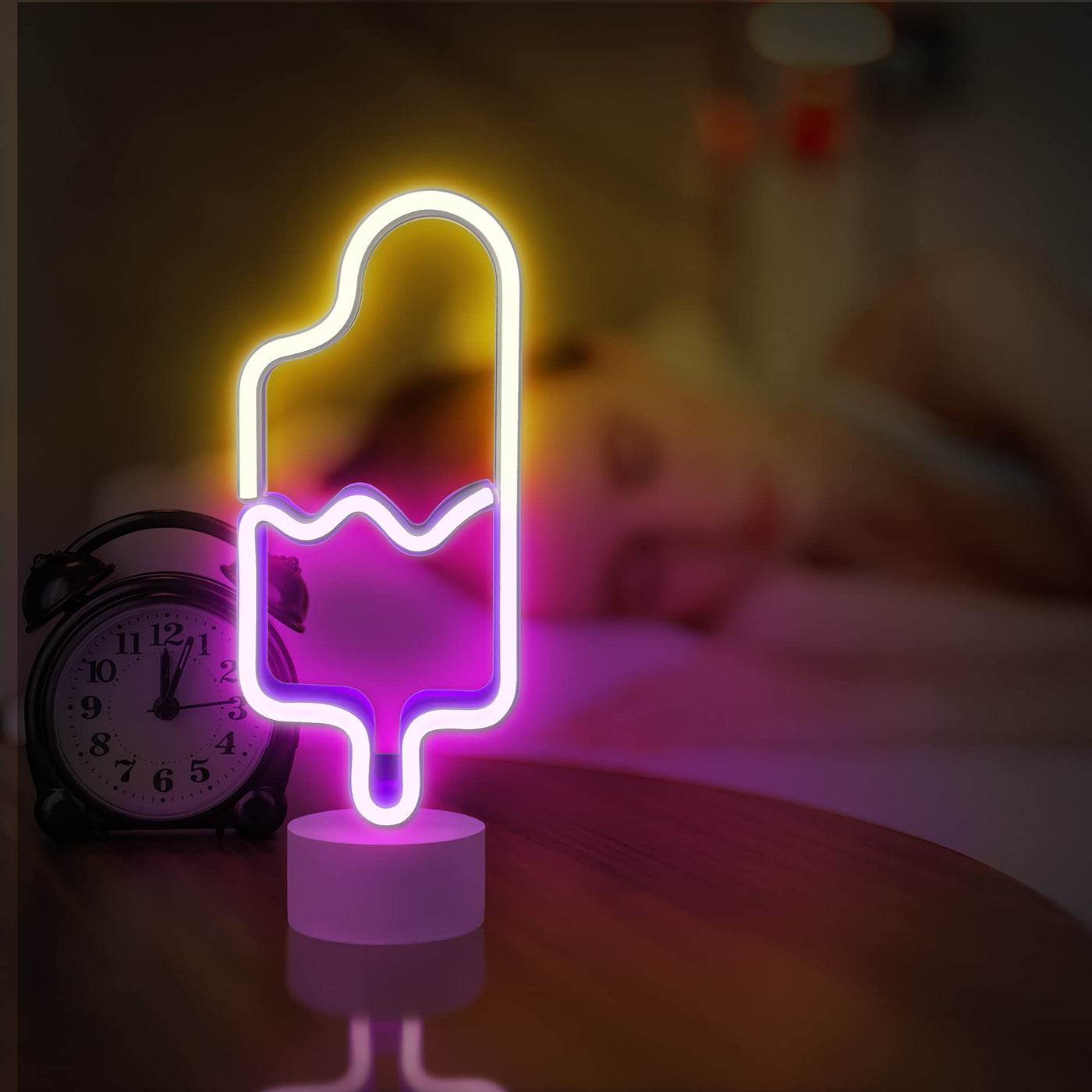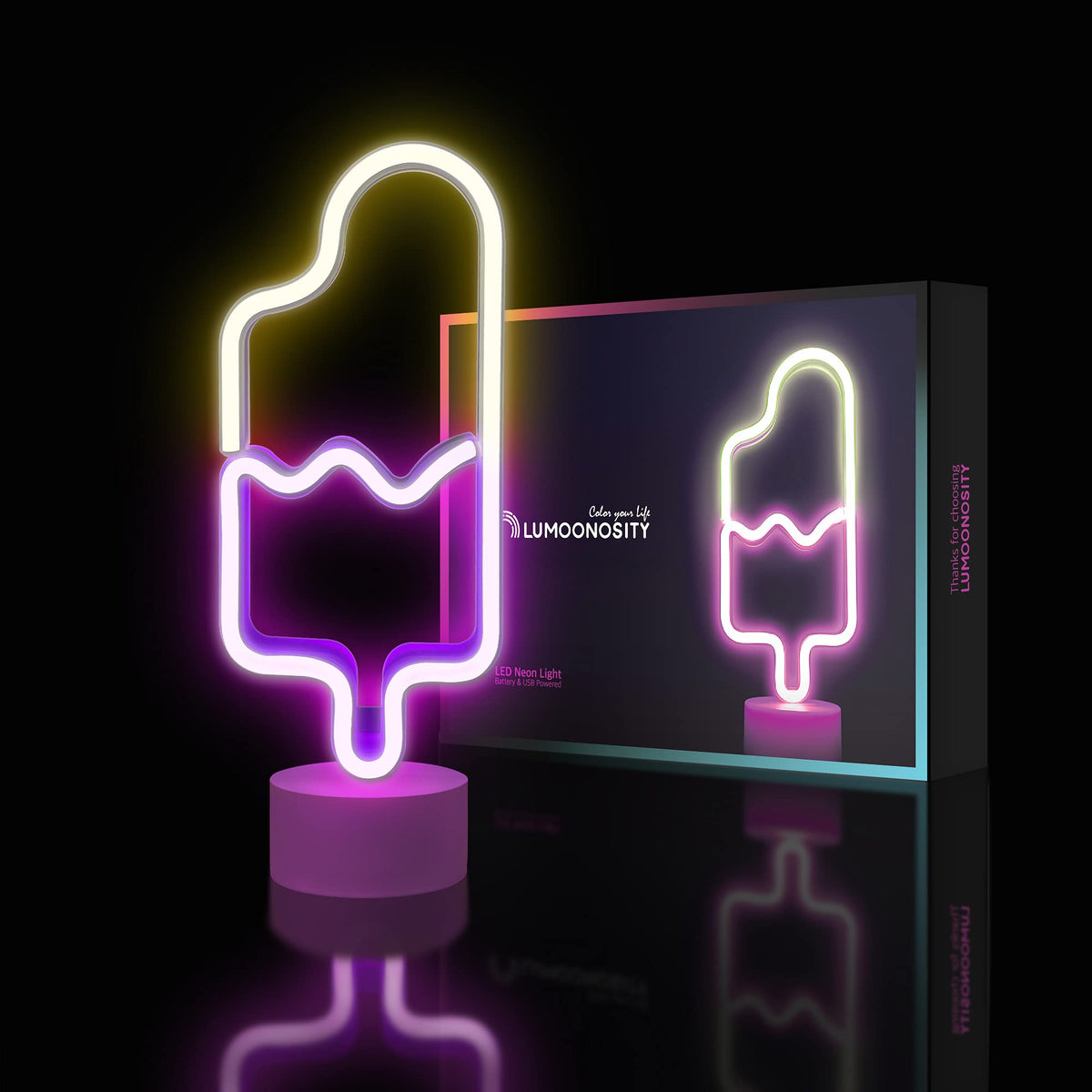 Lumoonosity Popsicle Neon Light - Usb/Battery Ice Cream Lamp For Bedroom Decor - Pink & Warm White