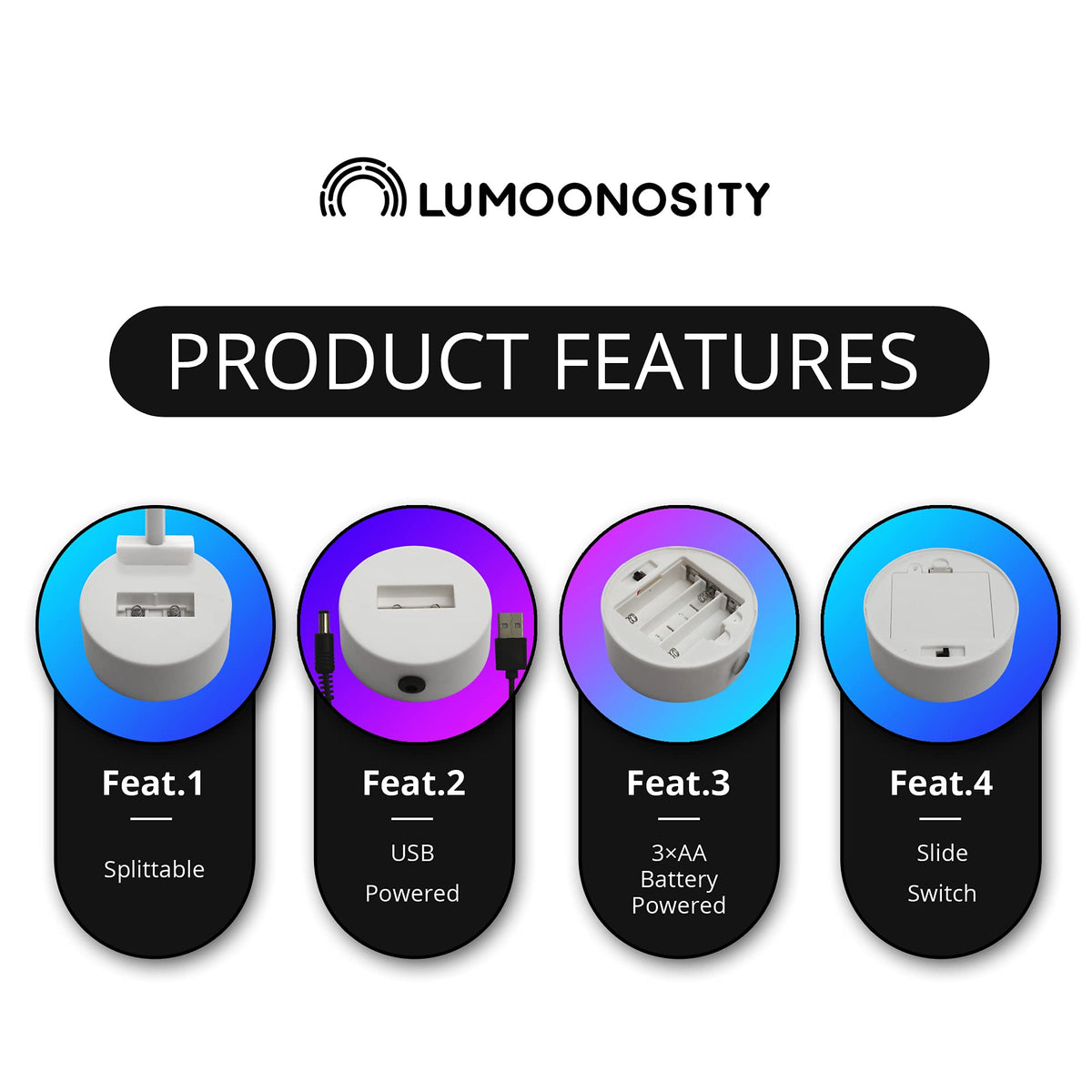 Q: What are the power options for the Lumoonosity Popsicle Neon Light?A: The Lumoonosity Popsicle Neon Light can be powered using either batteries or a USB connection, providing versatility in placement and usage.