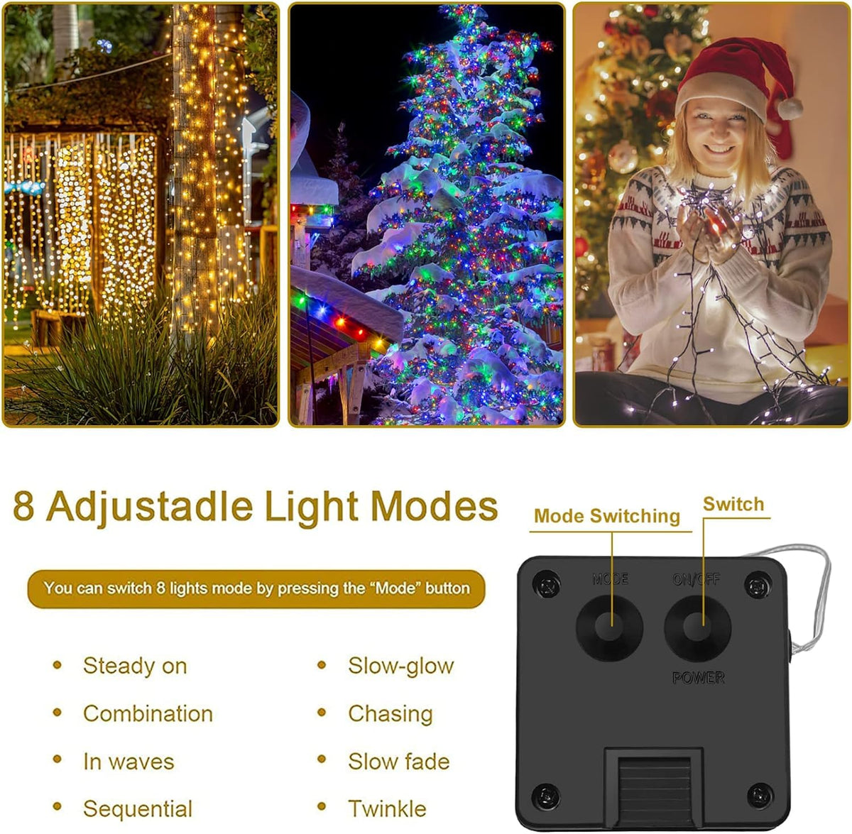 Q: What are the different lighting modes available for these solar fairy lights?A: These solar fairy lights feature 8 different lighting modes, allowing you to choose from various settings to create the perfect ambiance for any occasion.
