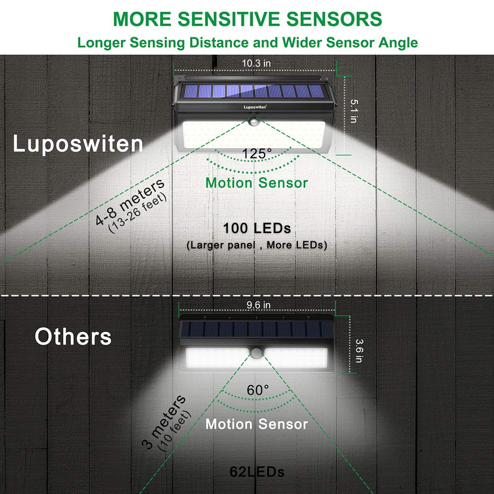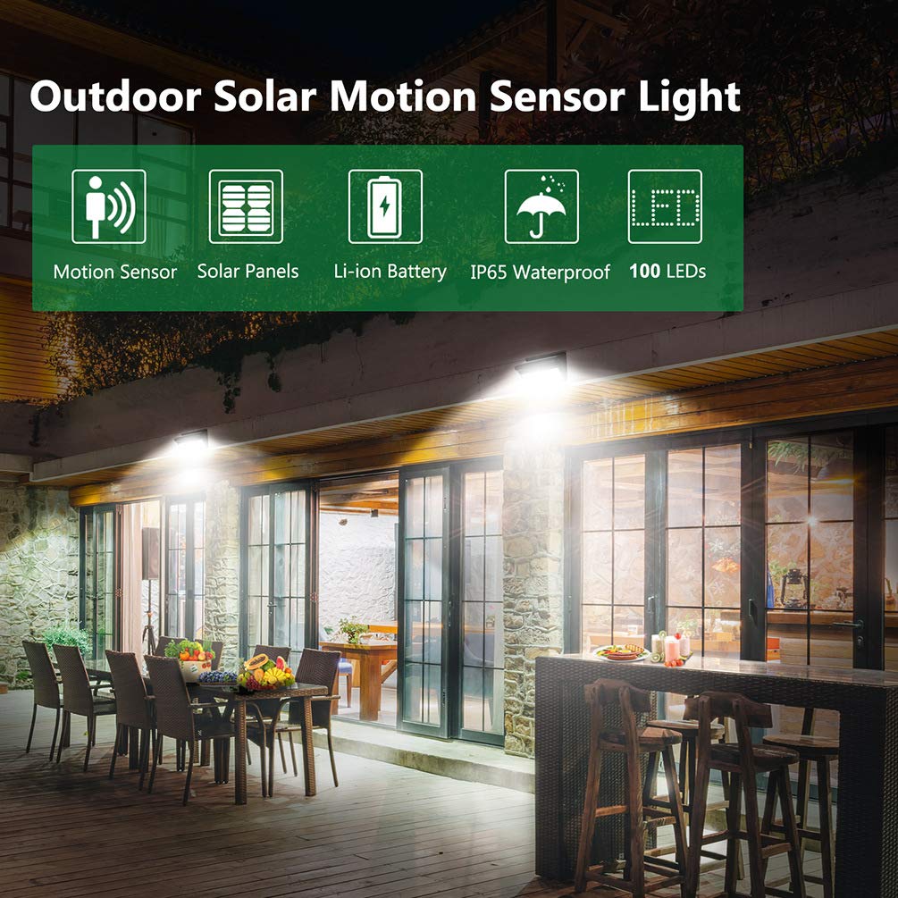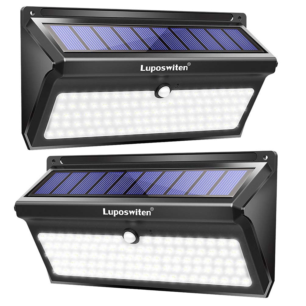 Luposwiten 100 LED Solar Motion Lights - 2000 Lumens, Waterproof, Easy-Install, 125° Angle, 2-Pack for Garden, Yard, Garage