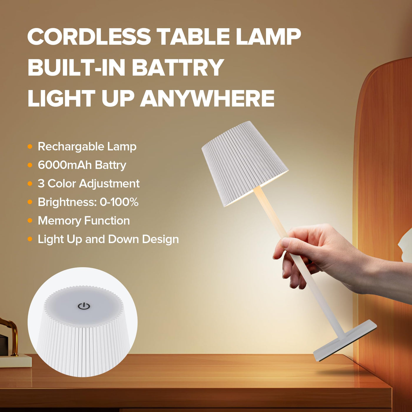 Lutec 2 Pack Cordless Table Lamp,6000Mah Rechargeable Battery Operated Desk Lamp,Two Adjustable Heights,Waterproof, Touch Control & 3 Color Stepless Dimming For Restaurant/Bedroom/Bars/Outdoor (White)