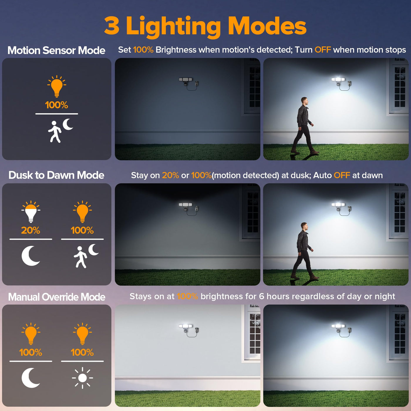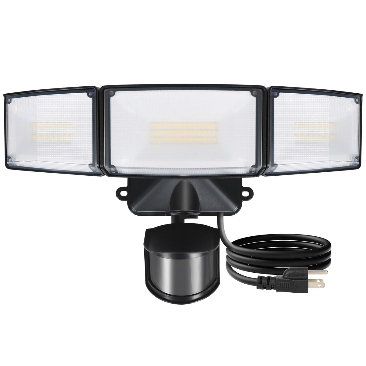 LUTEC 49W Motion Sensor Outdoor Lights, 5500 LM Plug in Flood Light Outdoor, Dusk to Dawn, IP65 Waterproof Security Lighting, 5000K Daylight, Adjustable Wall-Mounted for Garage, Yard, Porch (Black)