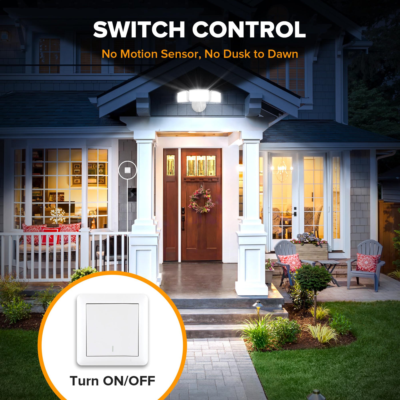 Lutec 75W 8000 Lumen Floods Light Outdoor, Switch Controlled Led Security Lights With 3 Adjustable Heads, 5000K Daylight, Ip65 W