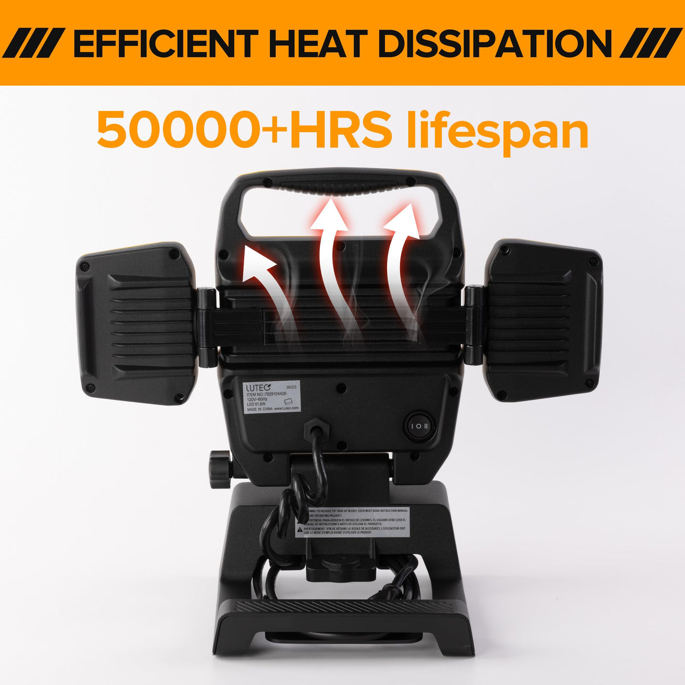 Q: How long can I expect the LUTEC work light to last?A: The work light is designed with efficiency heat dissipation and has a lifespan of up to 50000 hours, ensuring long-term reliability.