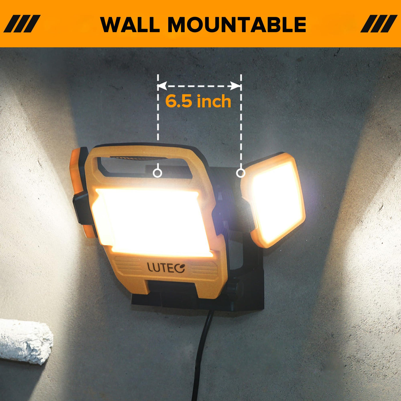 Q: Can I mount the LUTEC work light on a wall?A: Yes, the work light comes with a durable stand structure that allows for wall mounting, providing elevated lighting for your workspace.