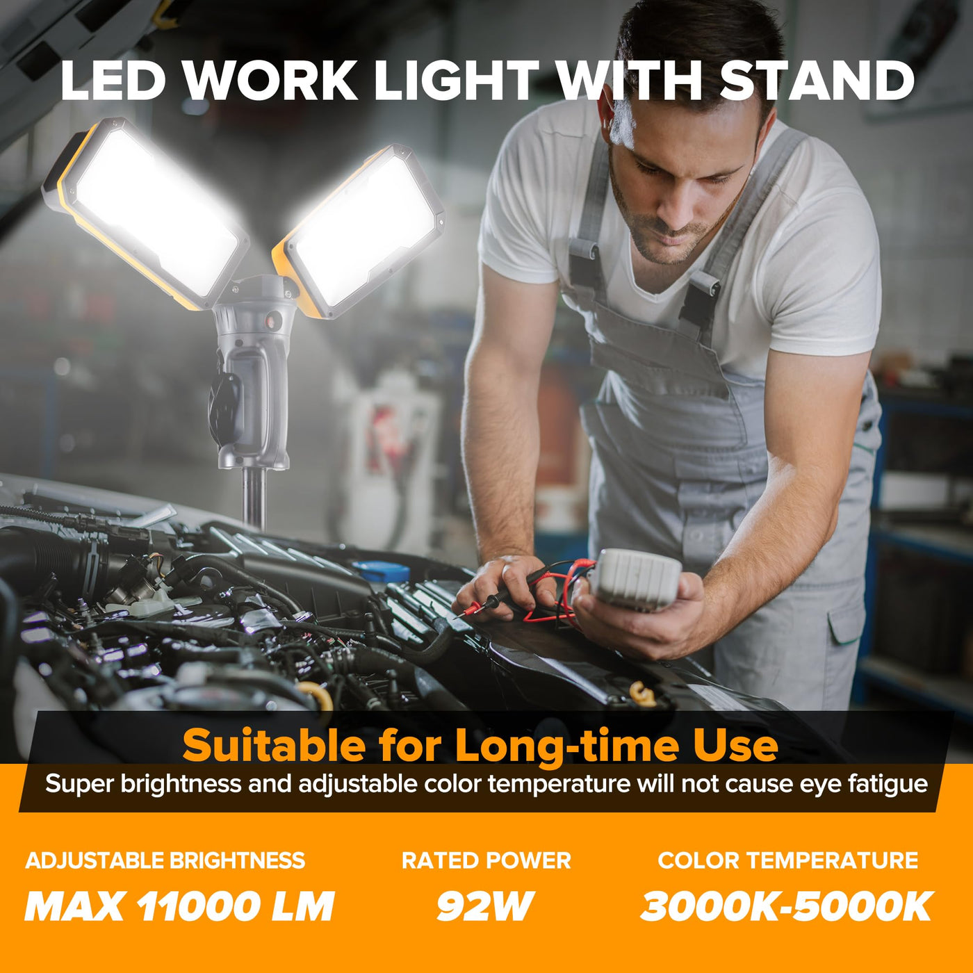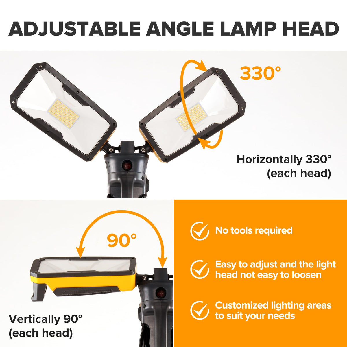 LUTEC Peri 6290L 5000 Lumen 38 Watt Dual-Head LED Work Light with Telescoping Tripod, Work Light with Stand Rotating Waterproof Lamps and 8 Ft 2-Prong Power Cord