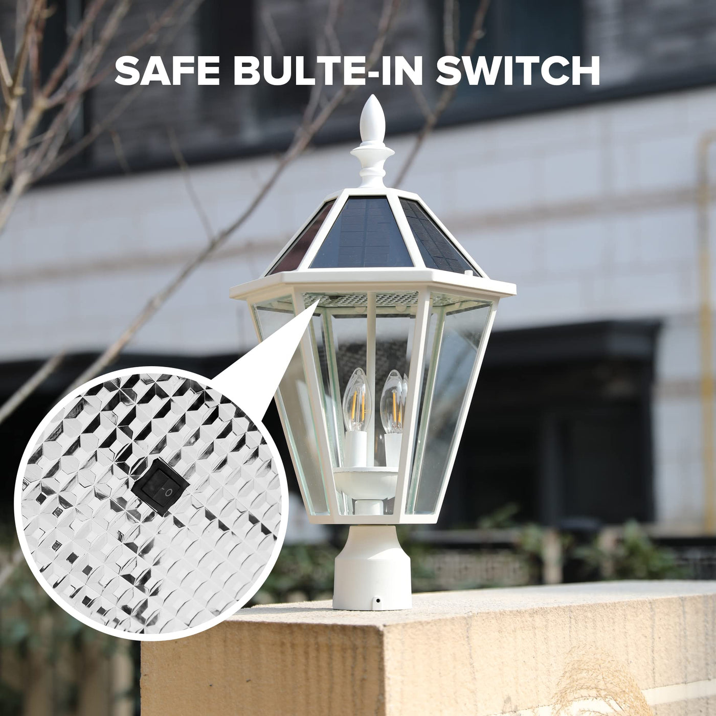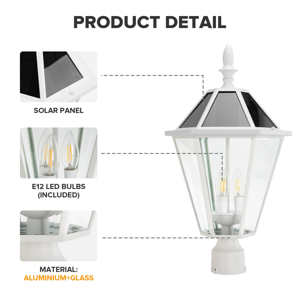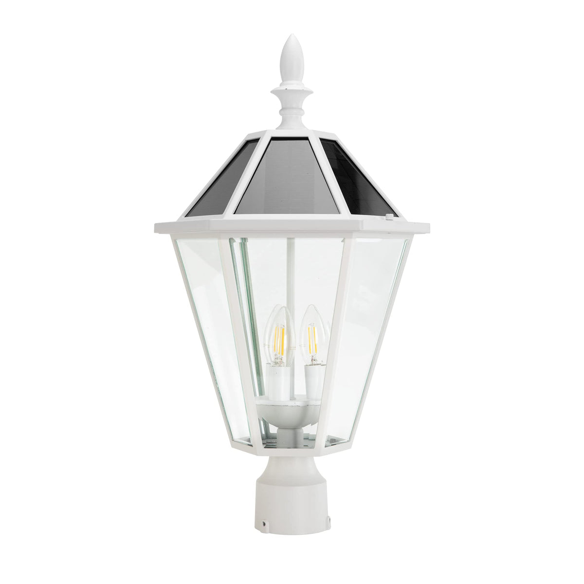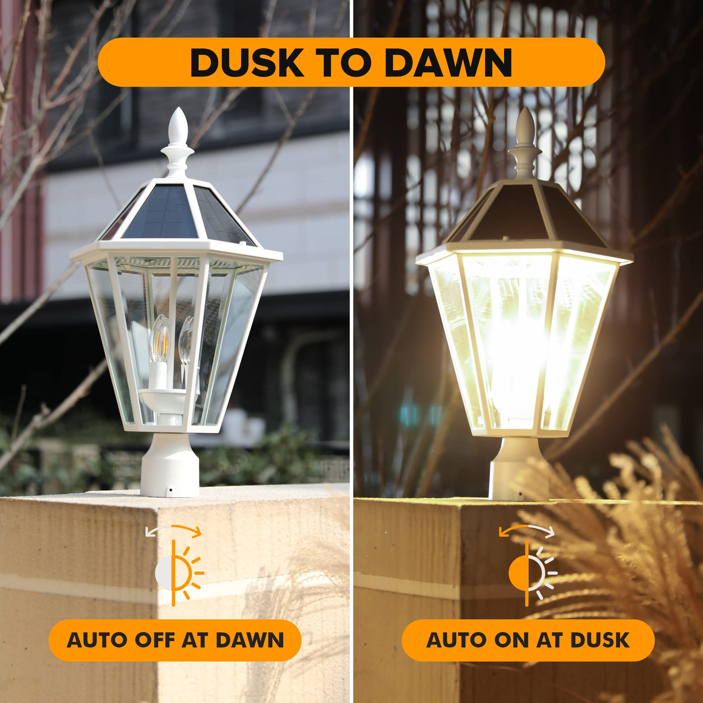 Lutec Solar Post Light, 300Lm Vintage Dusk To Dawn Aluminum Outdoor Light - White