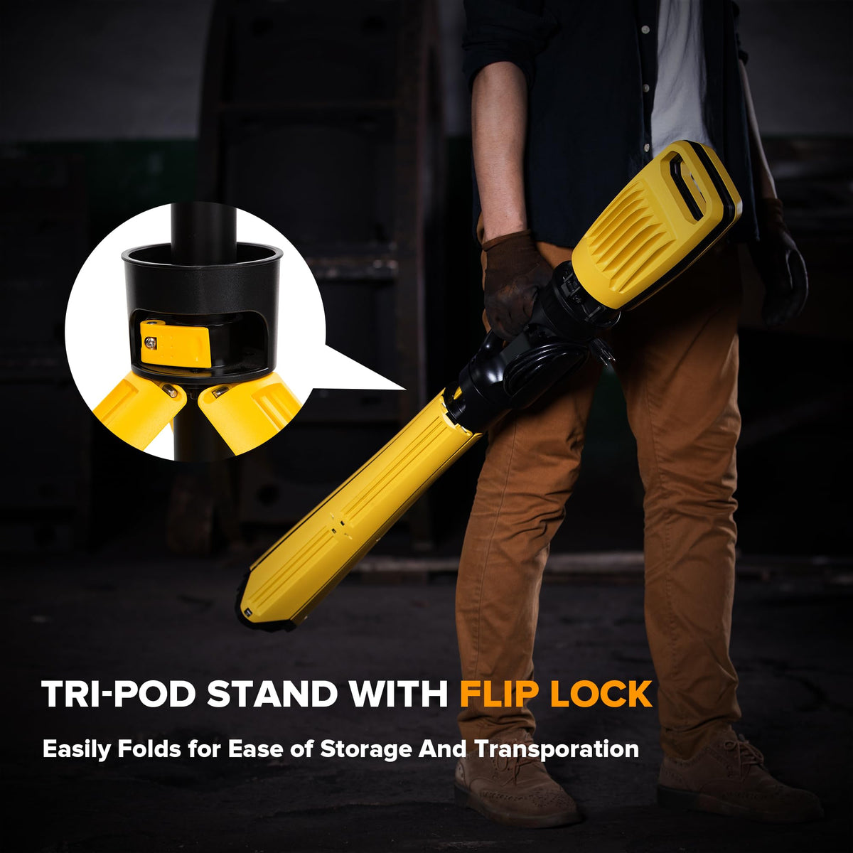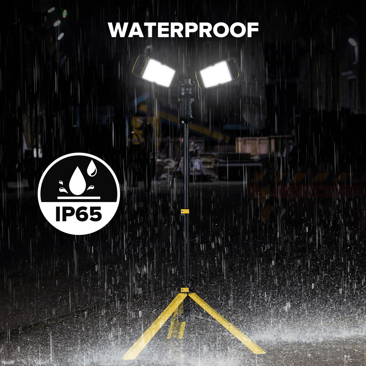 Q: What are the benefits of using the LUTEC Work Light with Stand?A: The LUTEC Work Light offers up to 10000 lumens of brightness, making it ideal for illuminating large areas. Its energy-efficient LED technology ensures low power consumption and a long lifespan compared to traditional halogen bulbs. Additionally, the dual-head design allows for versatile lighting options, catering to various work site needs.