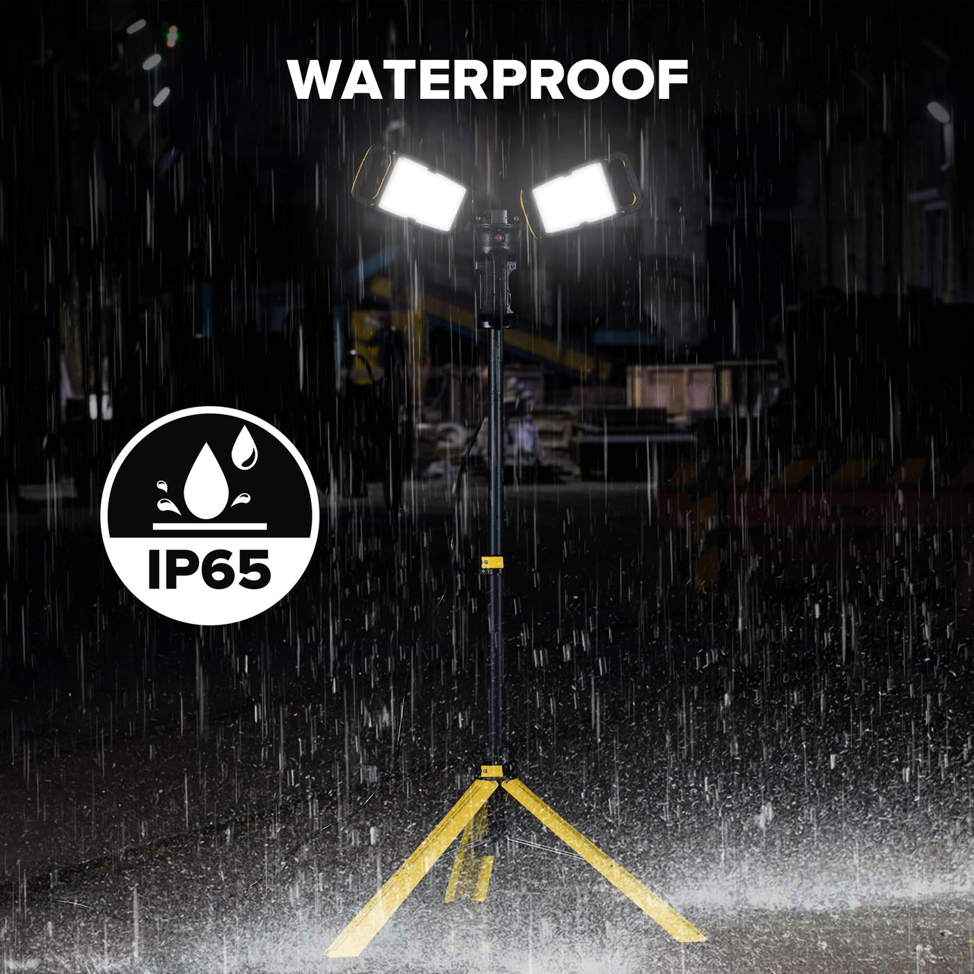 Lutec Work Light With Stand, 10000 Lumen Dual-Head Led Work Light With Telescoping Tripod, Portable Corded Led Job Site Lighting