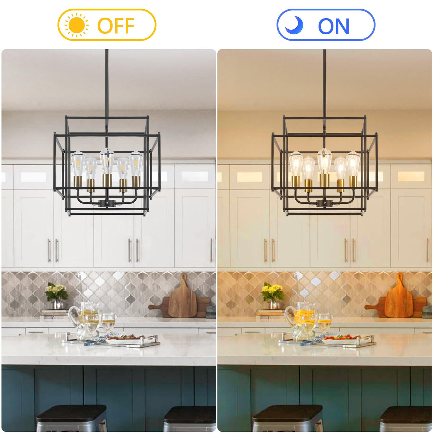 Q: What style and decor does this chandelier complement?A: This chandelier features an industrial and rustic farmhouse style with a simple geometric form, making it an ideal lighting fixture for a variety of settings such as dining rooms, living rooms, kitchens, and even restaurants or hotels.