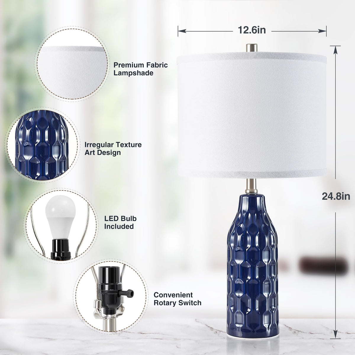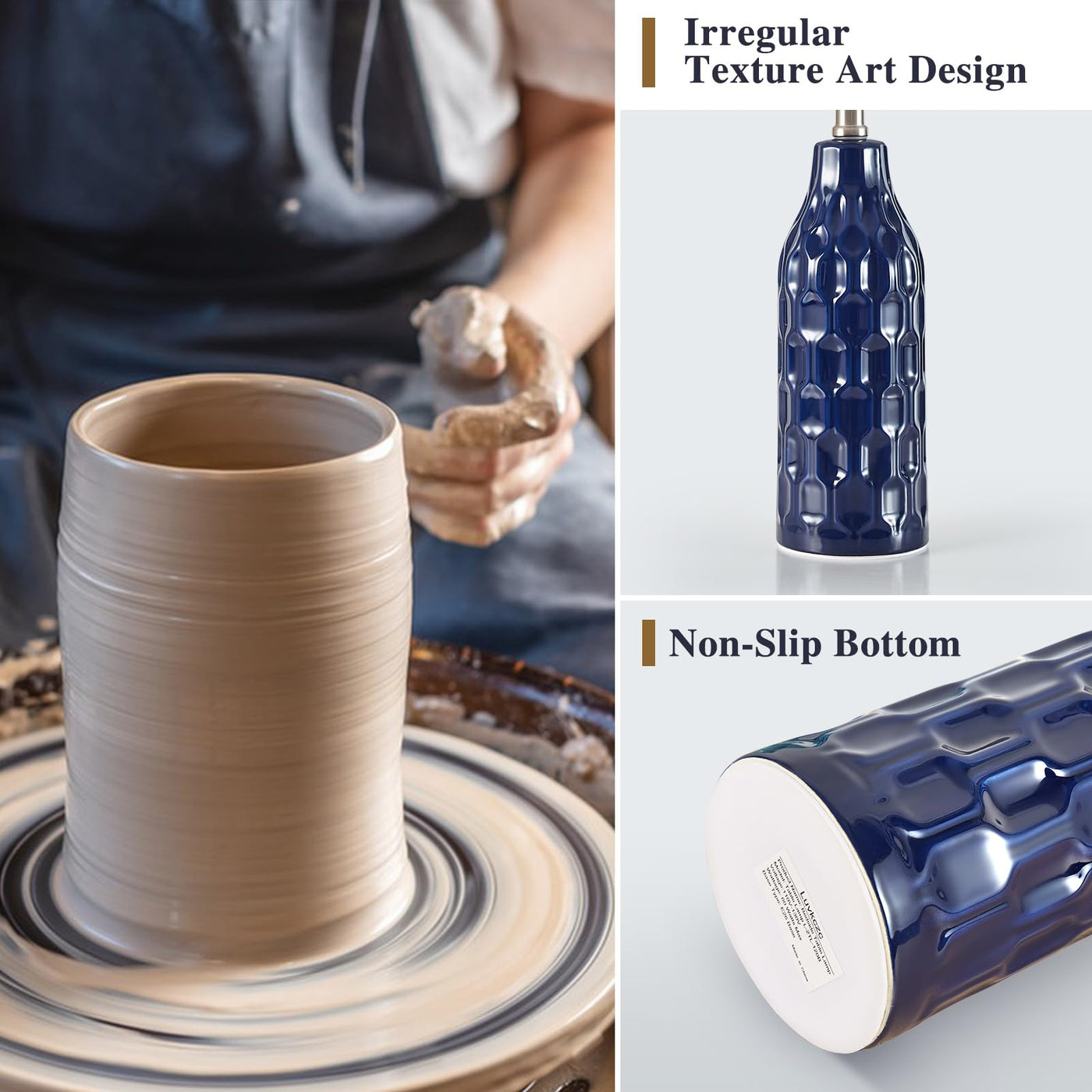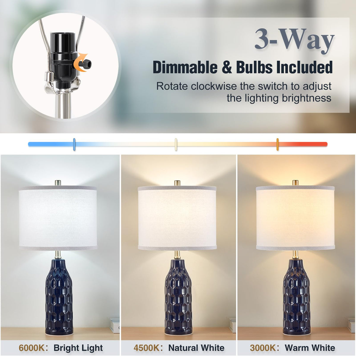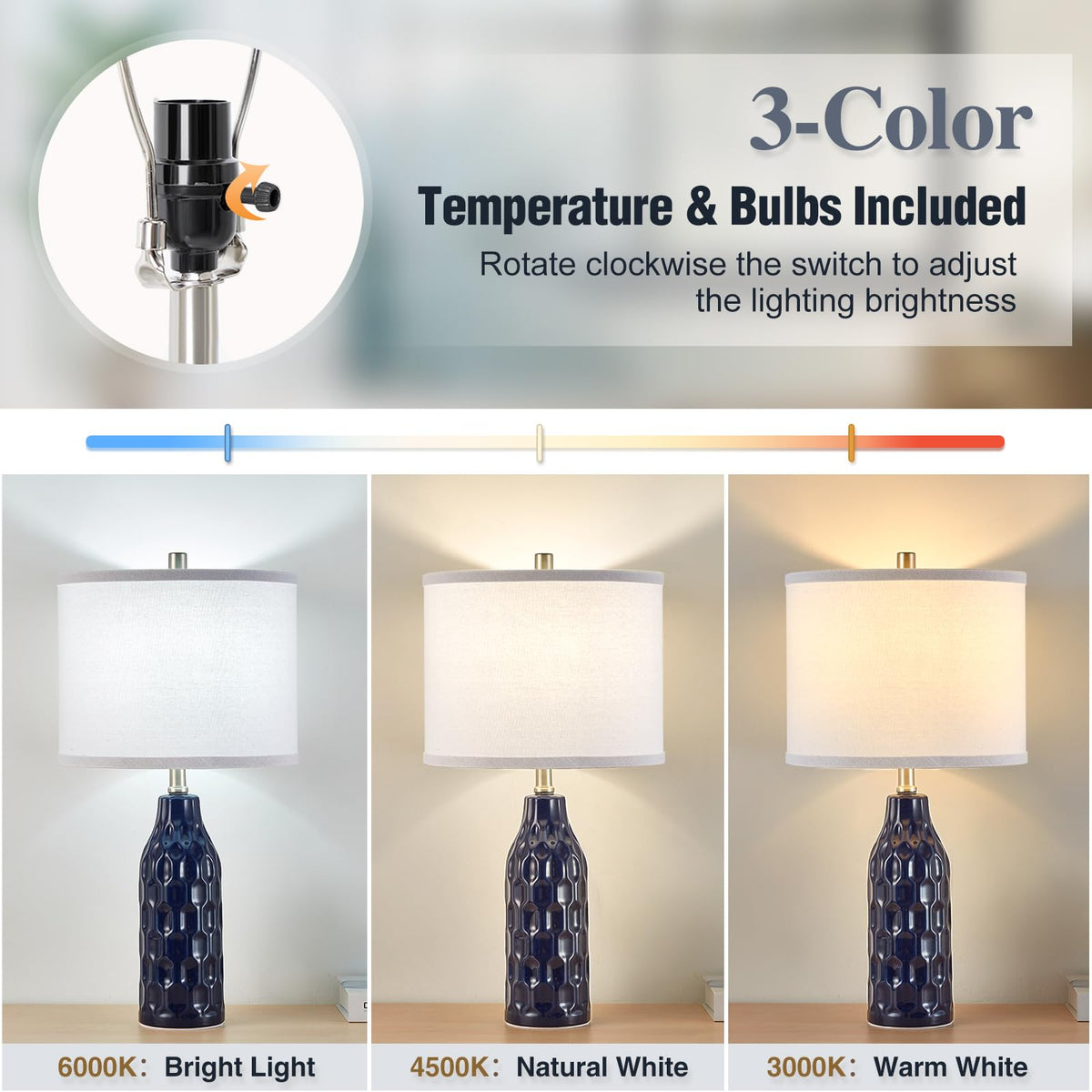 Luvkczc 24.8" Ceramic Table Lamps Set Of 2 - Navy Blue, 3 Color Temperatures, Bul