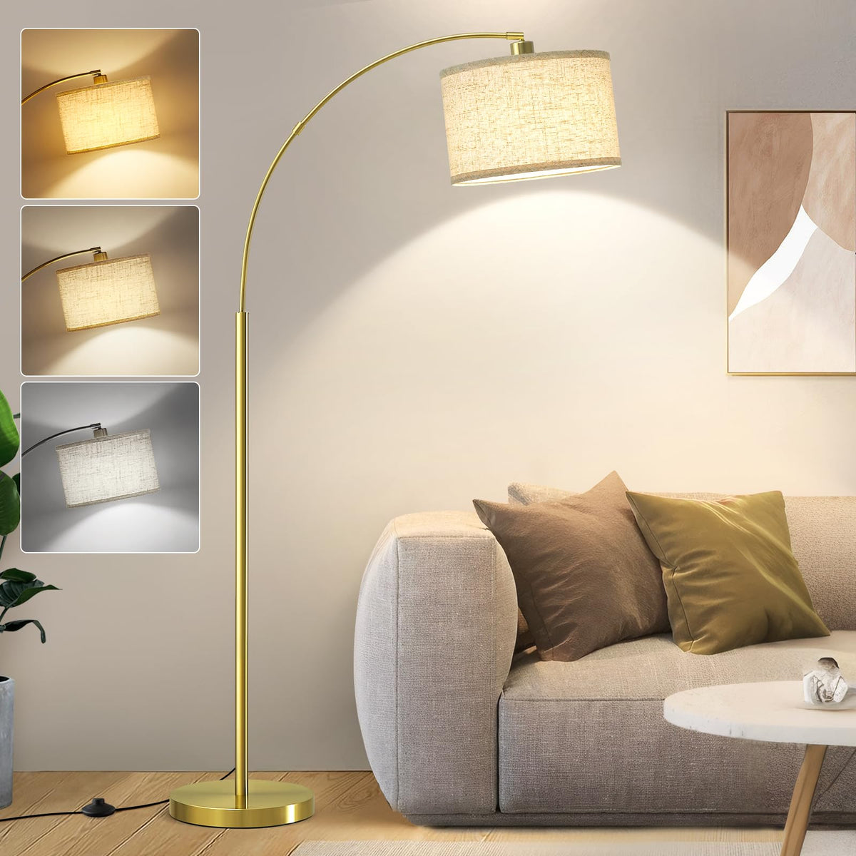 71'' Gold Floor Lamp, Arc Floor Lamp For Living Room With Adjustable Drum Lampshade, Modern Tall Standing Lamp With On/Off Foot Switch, Over Couch Arched Reading Light For Reading, Bedroom, Office (Gold,Beige)