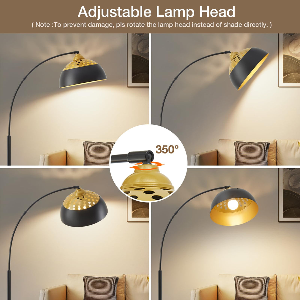 71'' Arc Floor Lamps For Living Room, Modern Standing Lamp With Adjustable Hanging Metal Hollow Shade, Tall Pole Lamp With Foot Switch, Over Couch Arched Reading Light For Bedroom, Office, Bulb Included