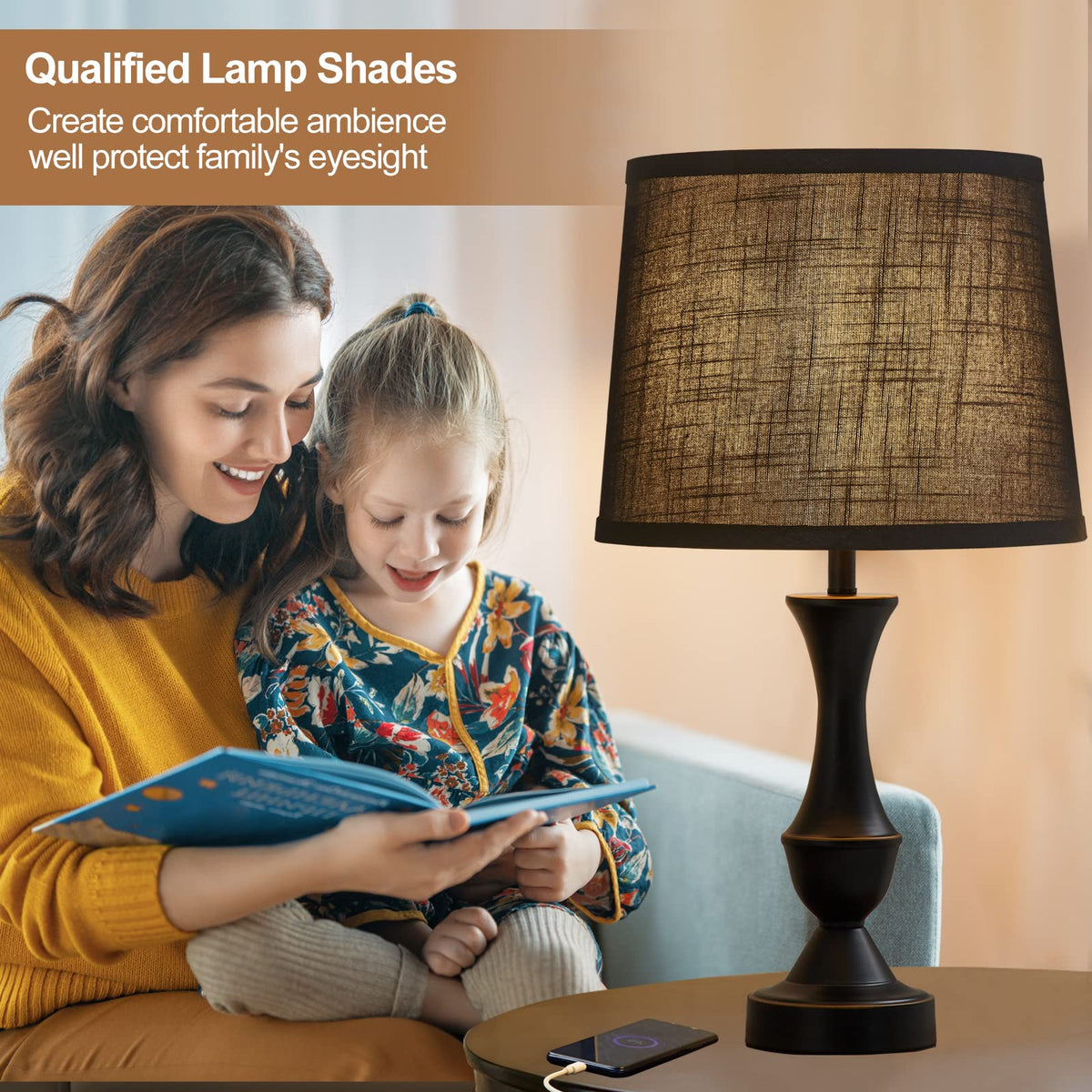 Luvkczc Black Fabric Drum Lampshades Set Of 2, 13 Top X 11 Bottom X 10 High, Includes Harp Holder, Model L-31005