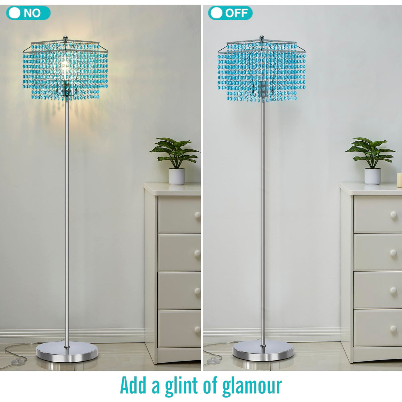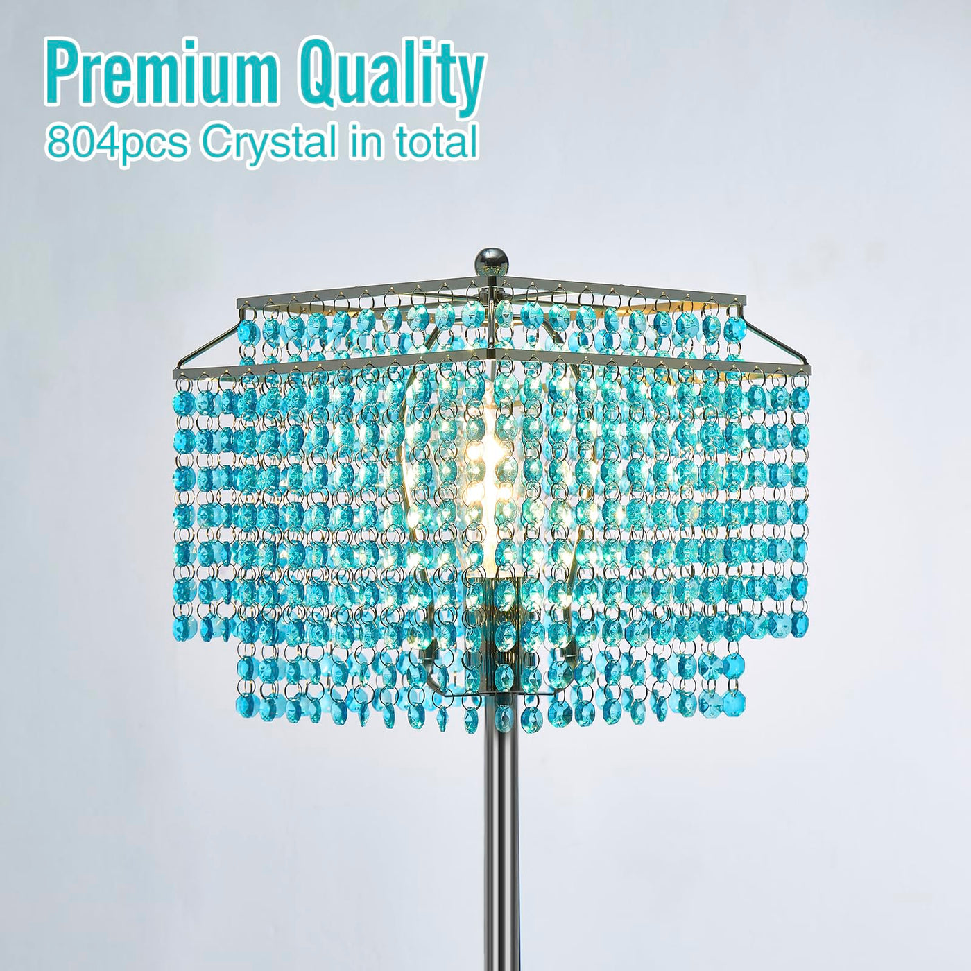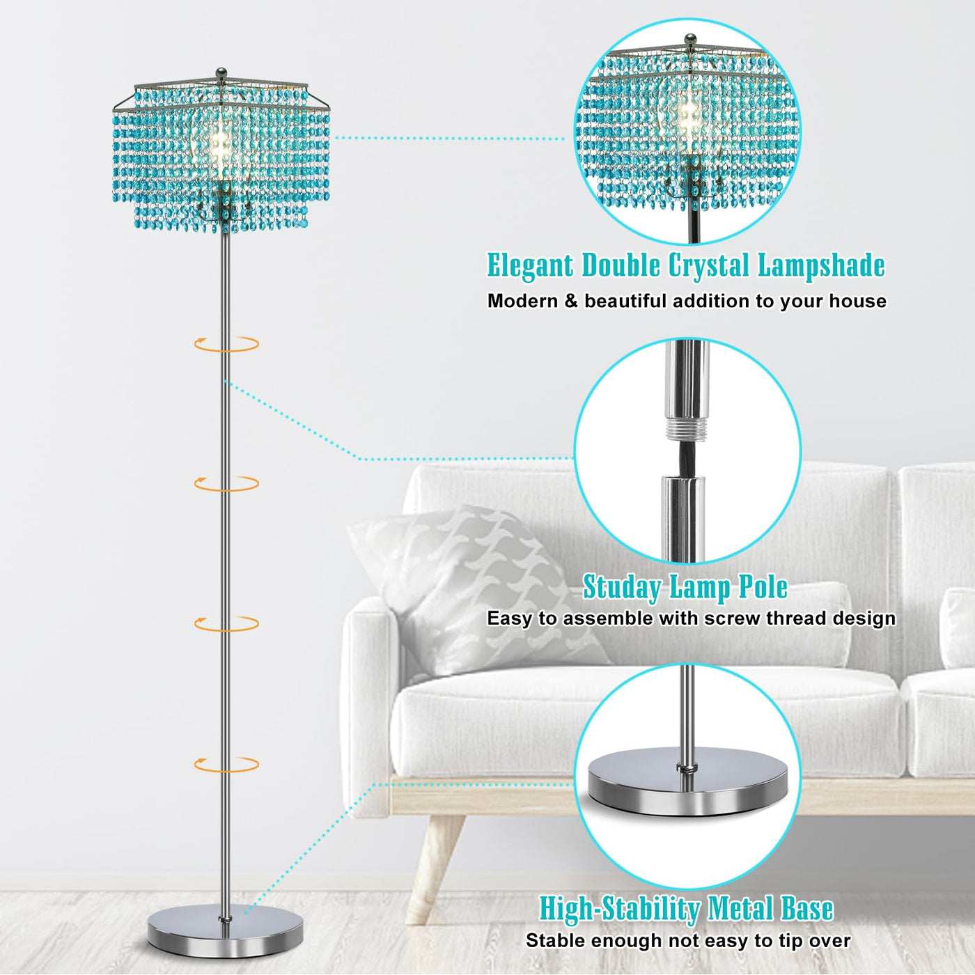 Luvkczc Crystal Floor Lamp Blue, 64'' Tall Elegant Standing Lamp With On-Off Foot Switch, Double-Layer Lampshade, Light Blue Sta