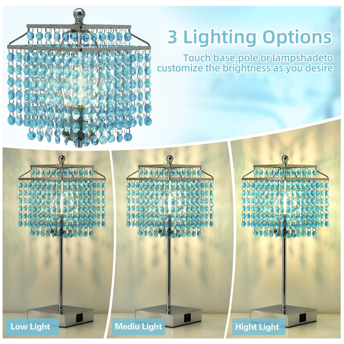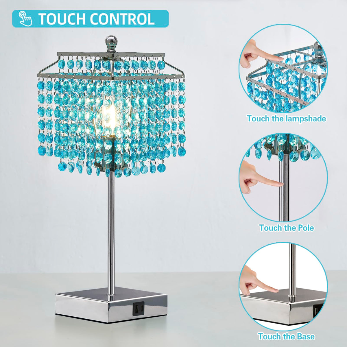 Luvkczc Crystal Table Lamp With Touch Control, Bedside Crystal Table Lamp With Usb C+A Ports, 3-Way Dimmable Lamp With Crystal S