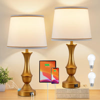 Introducing Our Exquisite Gold-Themed Table Lamps, Designed To Elevate Both Style And Functionality In Your Space. Crafted With A Metallic Gold Body And Base, These Lamps Exude Sophistication And Modern Elegance. Each Lamp Is Adorned With A White Fabric Lampshade Featuring A Delicate Golden Border, Adding A Touch Of Refinement To Its Design. Standing At A Height Of 22 Inches With A Width Of 9 Inches, These Lamps Are Perfectly Sized For Desks, Bedside Tables, Or Reading Corners. Enjoy Effortless Control With The Touch-Sensitive Feature, Allowing You To Adjust Brightness Levels With A Simple Tap. What Sets These Lamps Apart Is Their Practicality: The Base Includes Both Usb Type-C And Type-A Ports, Providing Convenient Charging Options For Your Devices While Maintaining A Clutter-Free Environment. Crafted From High-Quality Materials, The Metallic Lamp Body Ensures Durability And A Sleek Finish, While The Fabric Lampshade Softly Diffuses Light To Create A Warm And Inviting Atmosphere. Whether You'Re Enhancing Your Home Office Or Adding A Chic Accent To Your Living Room, Our Gold Desk Lamp Set Combines Elegance With Modern Convenience. Illuminate Your Space In Style And Enjoy The Perfect Blend Of Form And Function With These Sophisticated Lamps.