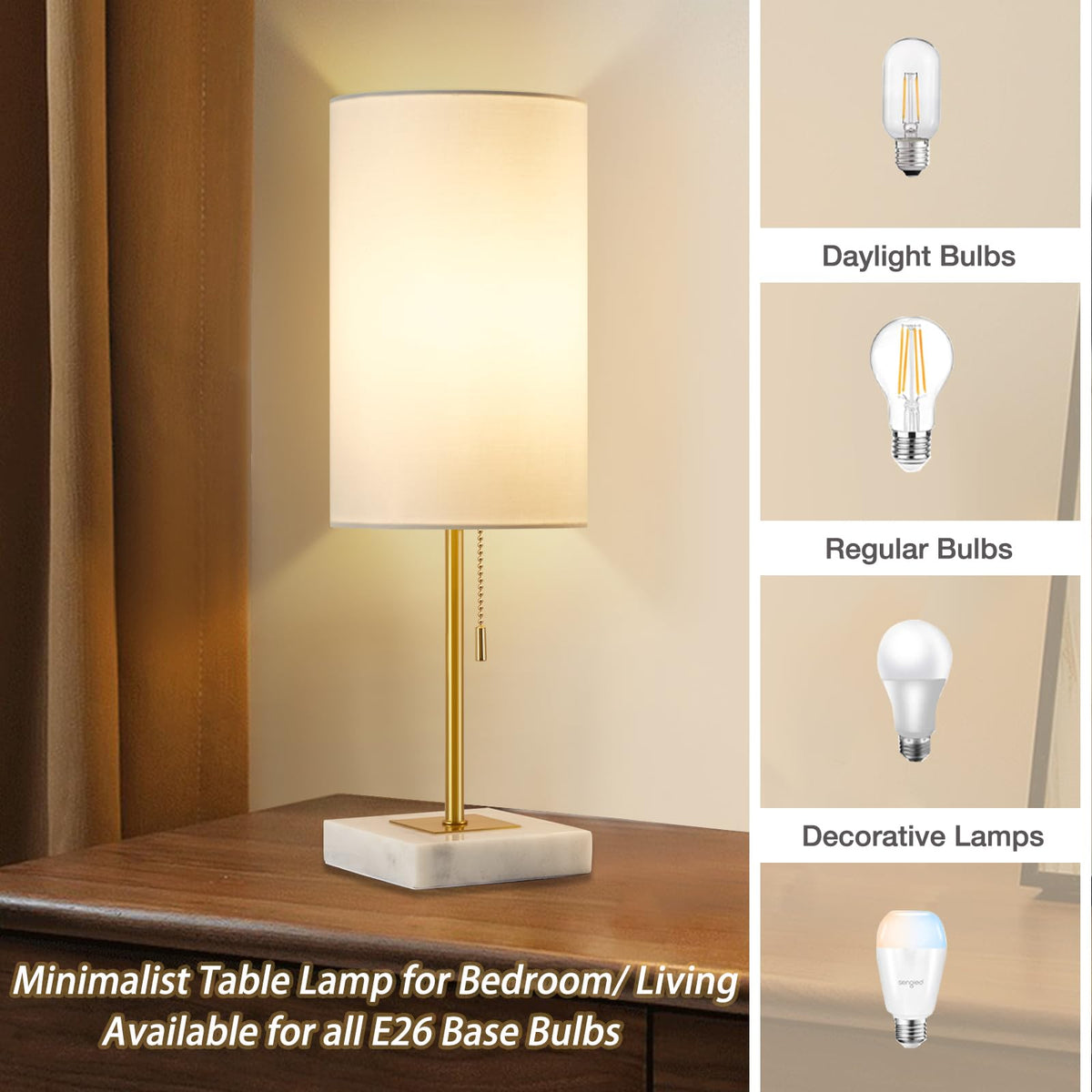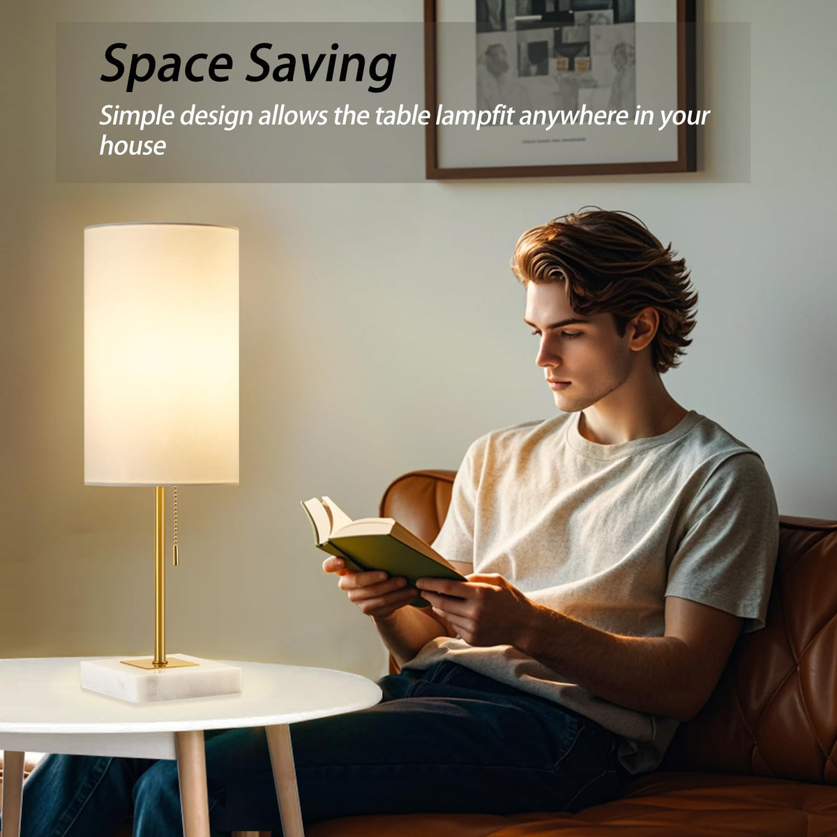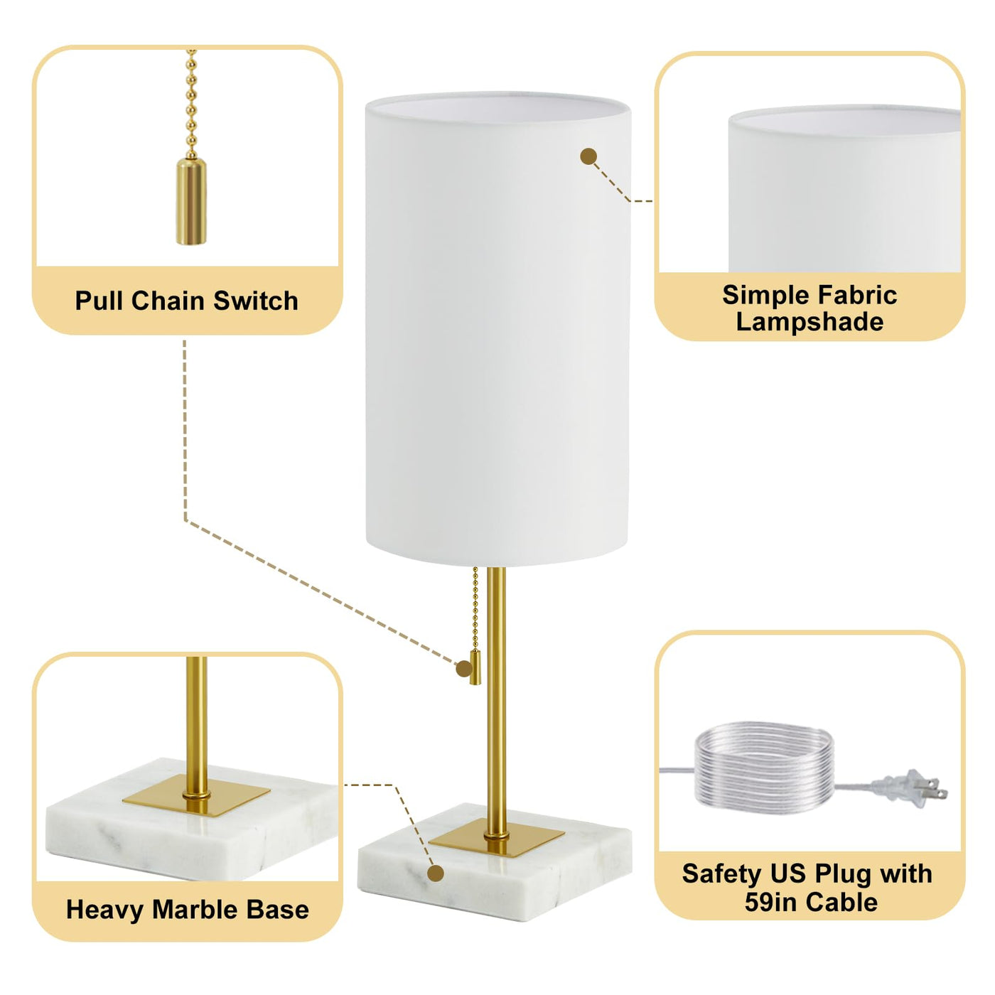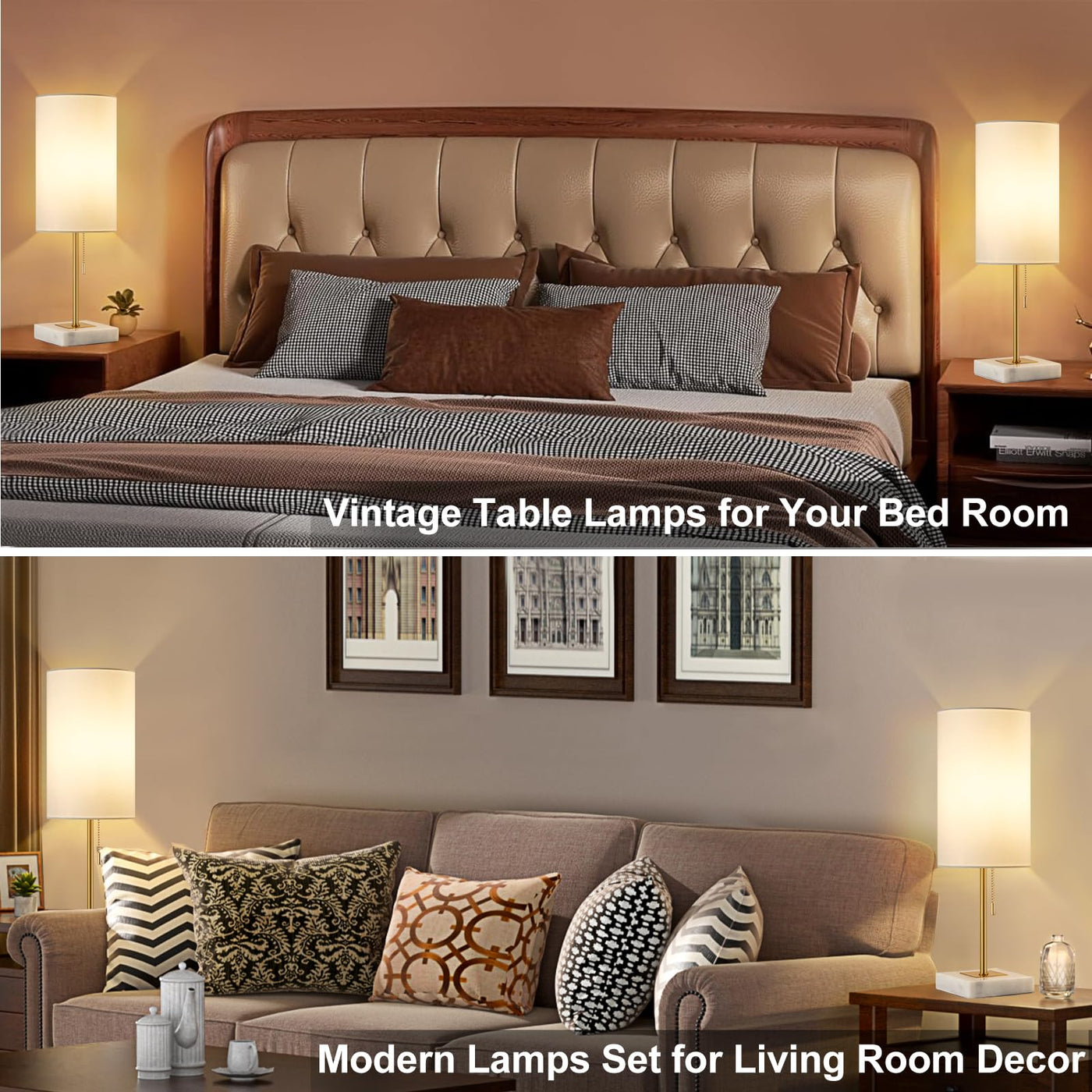 Luvkczc Minimalist Table Lamp Set Of 2, Nightstand Lamp For Bedroom Living Room, Modern Pull Chain Bedside Lamp With Marble Base, Fabric Shade, Small Desk Lamp For Home, Office, Reading,Square Gold