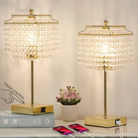 Luvkczc Set Of 2 Usb Bedside Crystal Table Lamp Gold, Touch Control Crystal Lamp, 3-Way Dimmable Lamp With Crystal Shade For Bedroom, Living Room, 6W Led Bulb Included