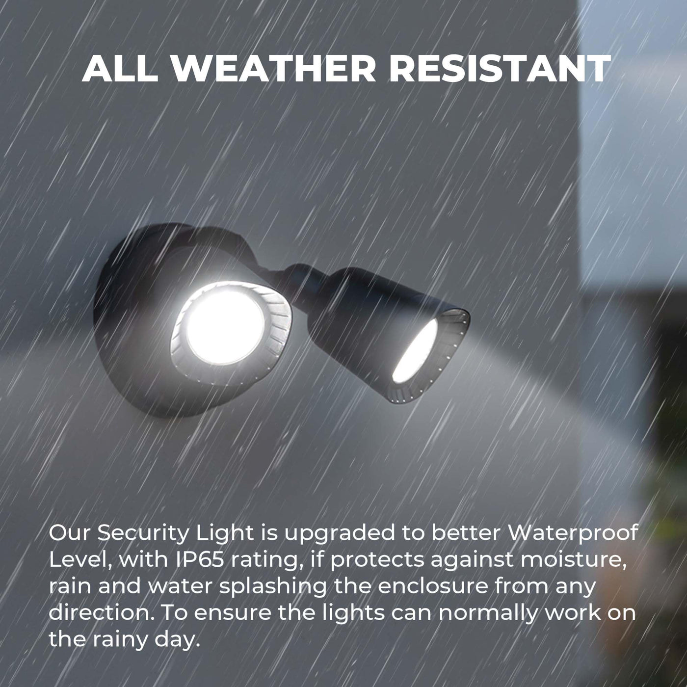 Q: Can the adjustable heads of the LUXFLY flood lights cover a large area?A: Yes, the dual adjustable heads of the LUXFLY flood lights allow for customizable lighting coverage, ensuring that your patio, garage, garden, or backyard is well-illuminated according to your specific needs.