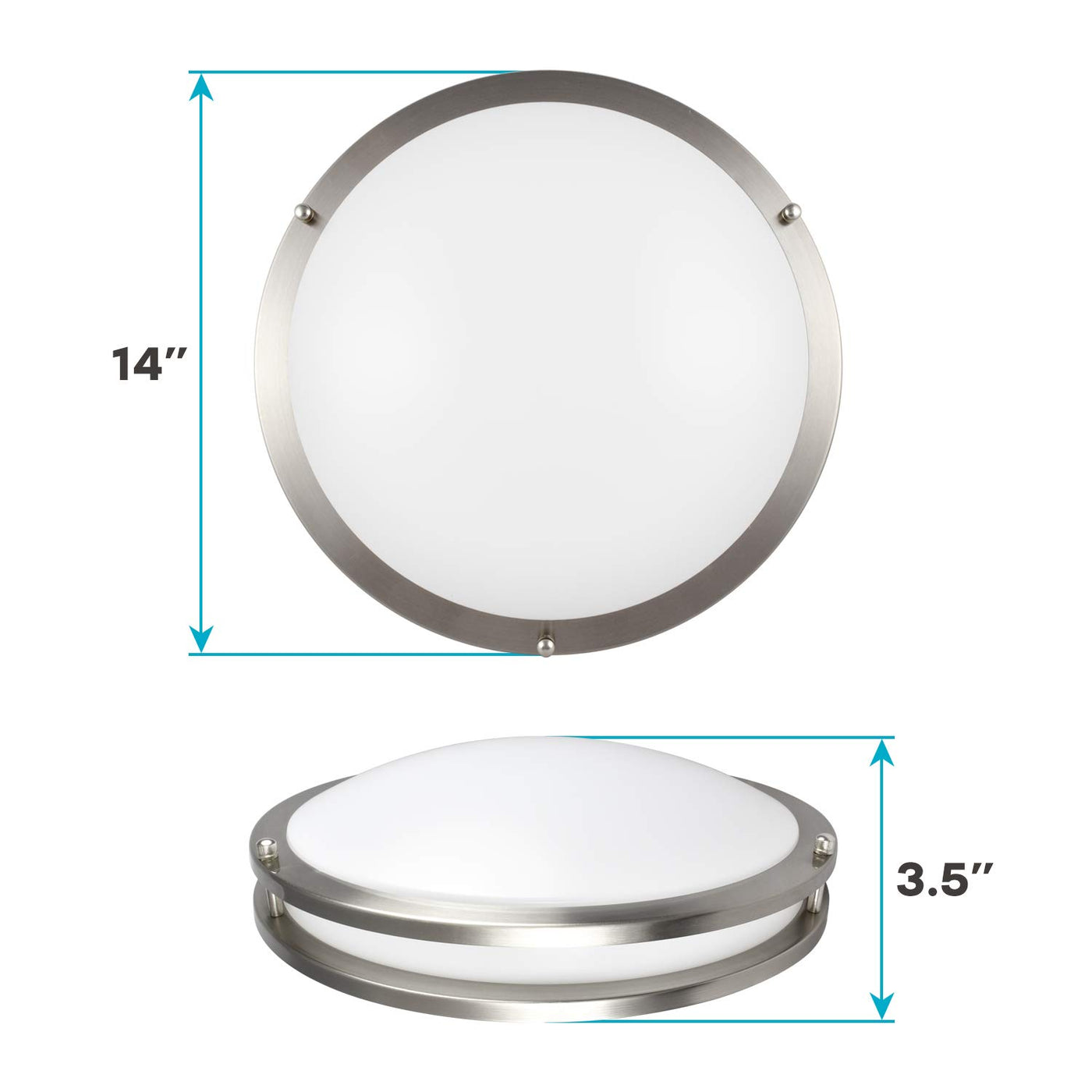 Q: What size is the LUXRITE ceiling light fixture?A: The LUXRITE LED Flush Mount Ceiling Light has a diameter of fourteen inches, making it suitable for various room sizes and ceiling heights.