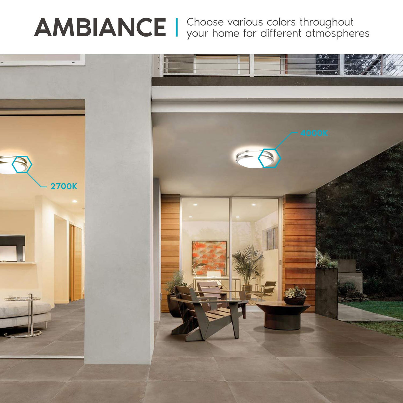 The Luxrite Ceiling Light Fixture is designed to enhance your indoor and outdoor spaces with versatile lighting options. Ideal for homes and businesses, this flush mount LED ceiling light provides the ability to select from five different color temperatures to create the perfect ambiance for any setting.