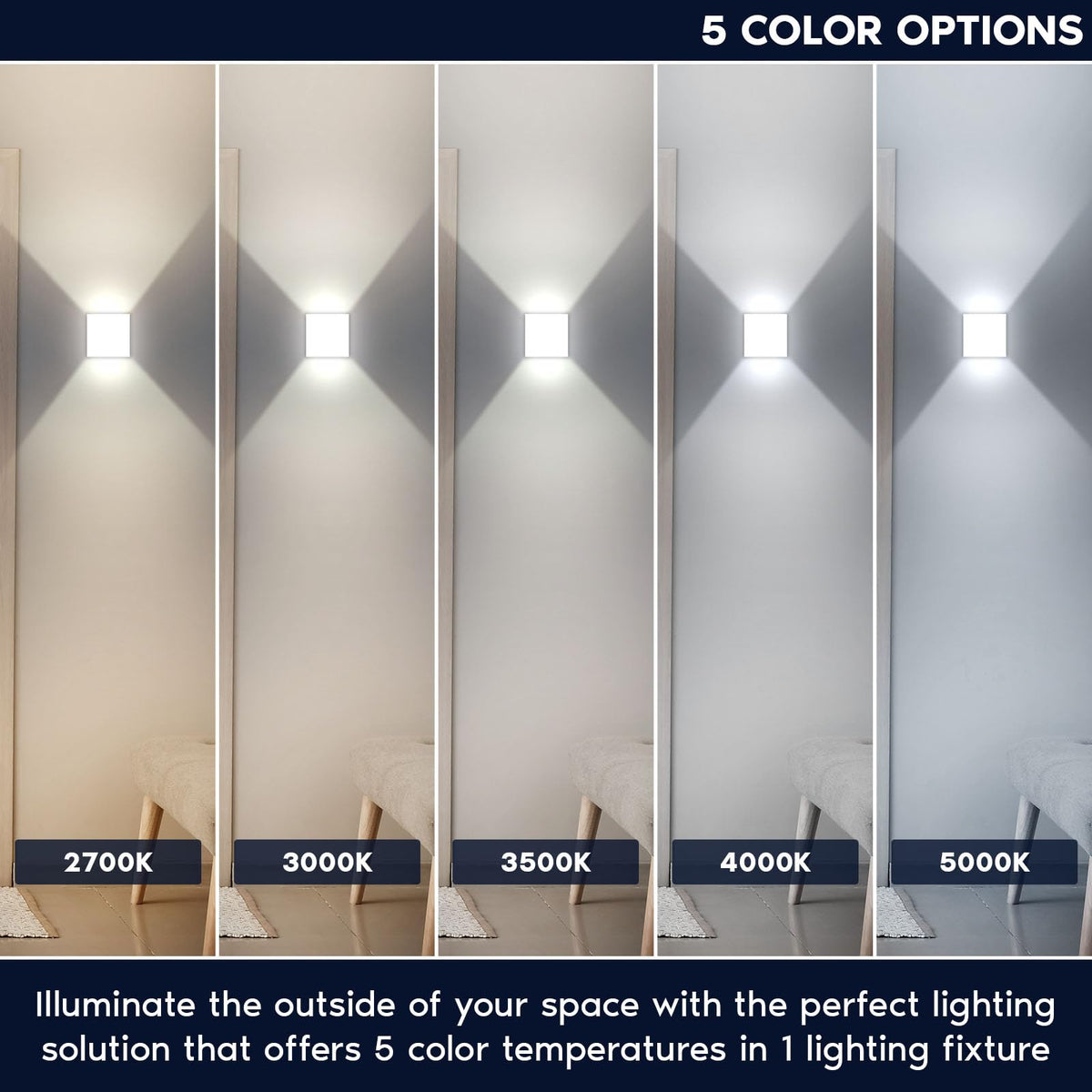 Transform your indoor and outdoor spaces with the Luxrite LED Up and Down Wall Sconce. This versatile lighting solution offers a unique 5-color selectable feature, allowing you to customize your lighting according to your preferences. With a sleek design and durable construction, this wall sconce is perfect for any setting.