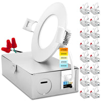 Luxrite 16 Pack 3 Inch Ultra Thin Led Recessed Light With Junction Box, 8W, Cct Color Selectable 2700K | 3000K | 3500K | 4000K |