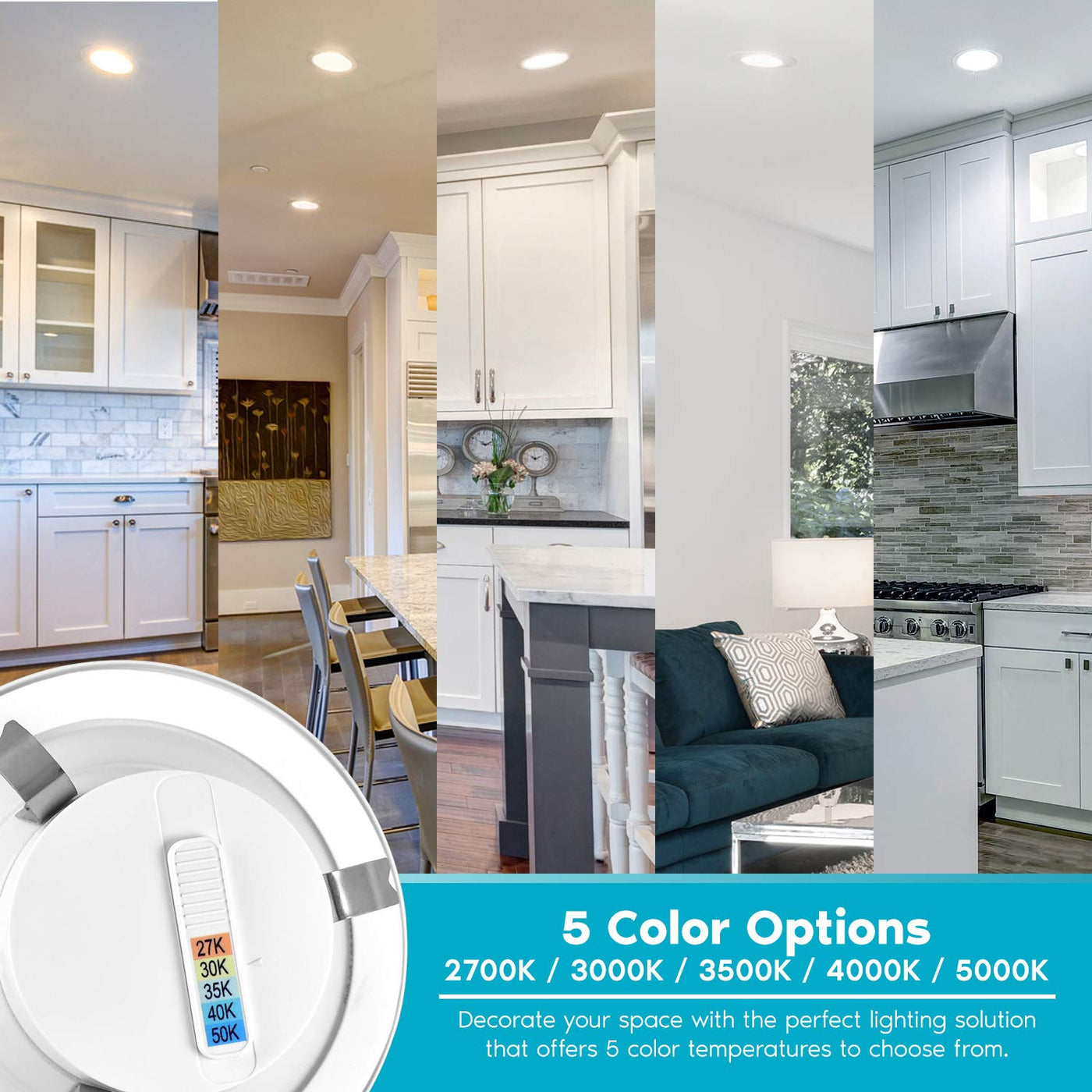 Luxrite Recessed Lighting With 5 Color Temperature Switch - The Perfect Solution To Those That Want The Ability To Pick The Correct Light For Your Home Or Business. With These Luxrite Led Recessed Ceiling Lights, You Are Offered 5 Color Temperature Options To Choose From With An Easy To Use Switch Attached To Each Down Light. Choose From 2700K Warm White, 3000K Soft White, 3500K Natural White, 4000K Cool White, Or 5000K Bright White With Just A Simple Adjustment. Built With A Lightweight Design, Each Led Can Light Is Easy To Handle And Install Into Your 4 Inch Can Housings. Just Using The E26 Adapter To Screw In Your Lights And Push The Fixture Into The Housing With The Metal Tabs For A Flush To Ceiling Finish. You'Ll Be Able To Use These Downlights Indoors And Outdoors Since Each Fixture Is Wet Location Rated To Handle Rain And Damp Areas, So Feel Free To Install In Soffits, Eaves, Or Even Showers. Control The Light Output With It'S Smooth Dimming Capabilities Which Can Go From 100% To 10% Light, Giving You A Comfortable Space Every Time.