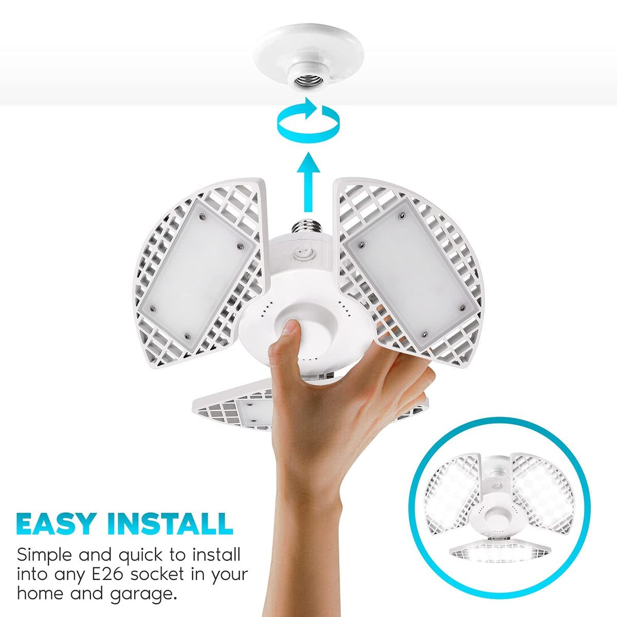 - **Durable Construction**: Made with a sturdy body and aluminum leaf panels, this garage light is built to last. The robust design allows for efficient heat dissipation, ensuring longevity even during extended use.