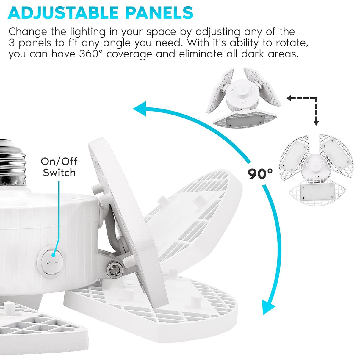 - **Adjustable Panels**: Each of the three panels can be adjusted within a 90-degree range, allowing you to direct light exactly where you need it for maximum coverage.