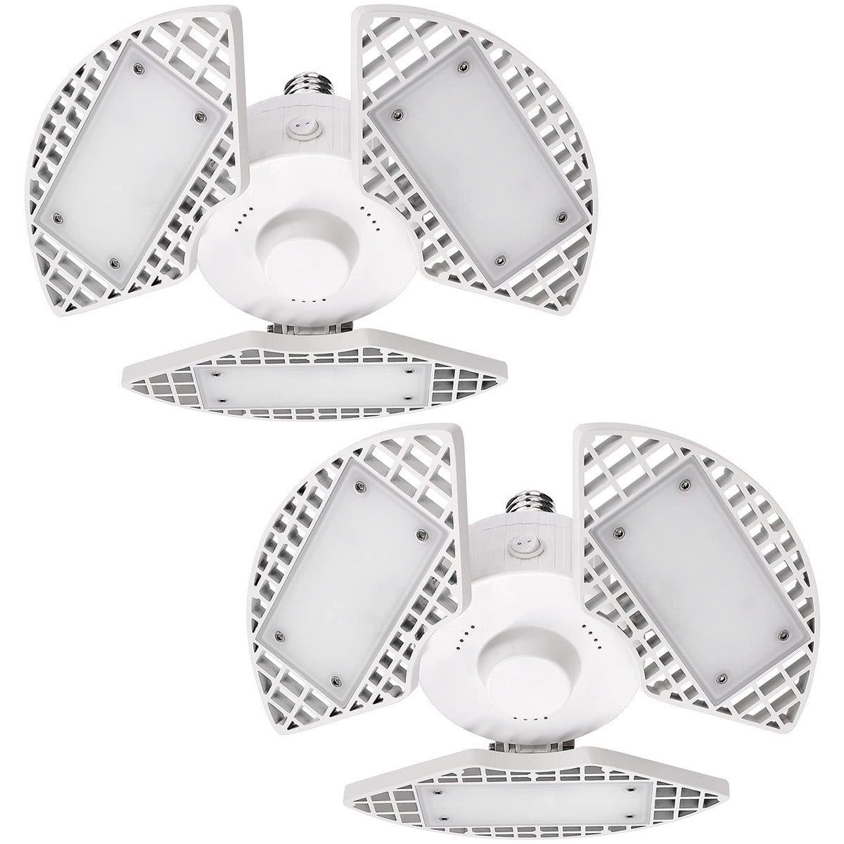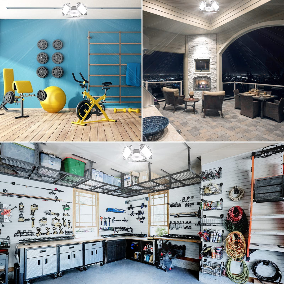 Introducing the Luxrite 3-Leaf LED Garage Light, a revolutionary lighting solution designed to enhance visibility and efficiency in your garage or workspace. This ultra-bright LED light provides an impressive 8000 lumens of powerful illumination across a 360-degree area, effectively eliminating dark spots and ensuring a well-lit environment. Its unique deformable design allows for customizable lighting direction, making it perfect for various settings.
