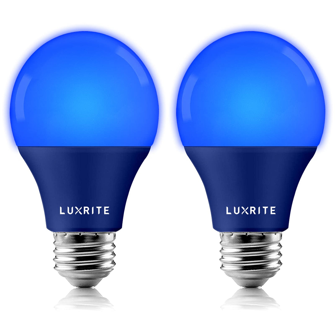 LUXRITE A19 LED Blue Light Bulb, 60W Equivalent, Non-Dimmable, E26 Base, 2 Count, Indoor/Outdoor