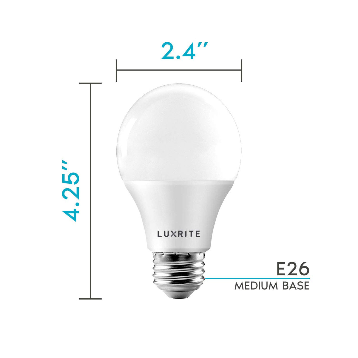 Luxrite A19 Led Light Bulb 60W Equivalent, 5000K Bright White Dimmable, 800 Lumens, Standard Led Bulb 9W, E26 Base, Energy Star, Enclosed Fixture Rated, Perfect For Lamps And Home Lighting (6 Pack)