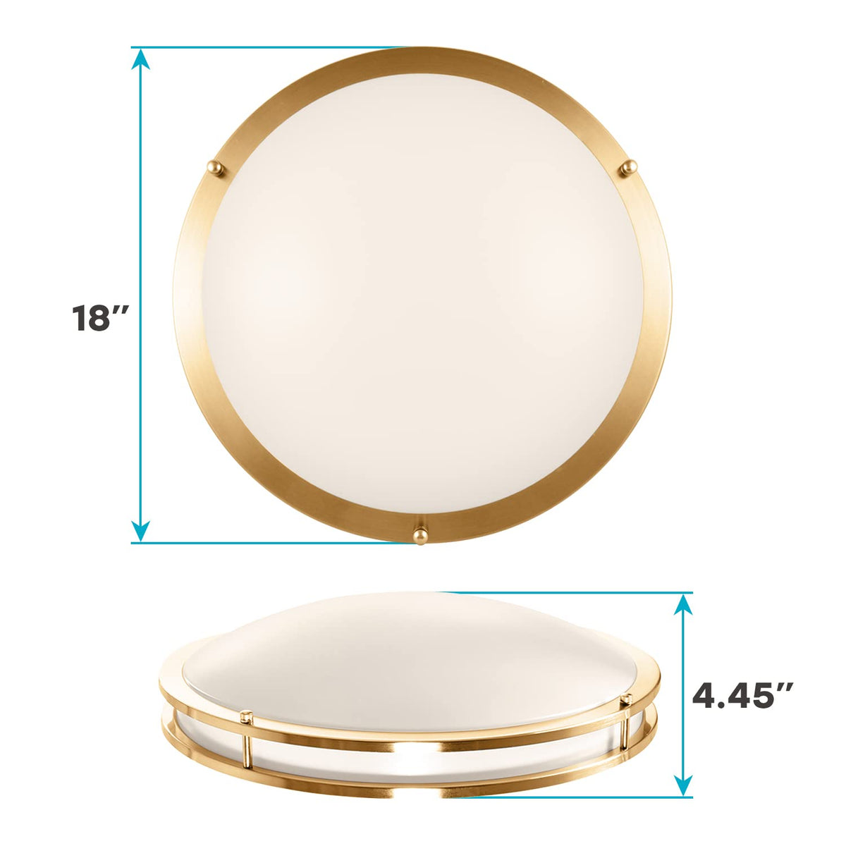 Q: What materials are used in the construction of the LUXRITE ceiling light?A: The LUXRITE 18 Inch LED Flush Mount Ceiling Light is constructed from metal with a brushed brass finish, providing durability and a modern aesthetic.