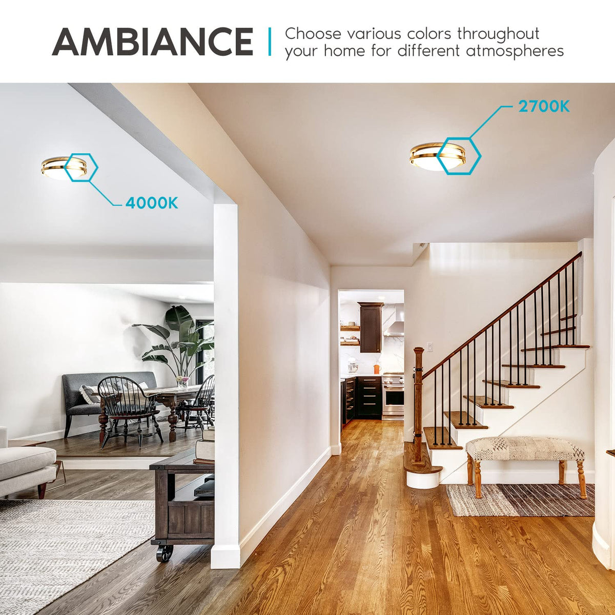 5 Color Options: Choose from 2700K warm white, 3000K soft white, 3500K natural white, 4000K cool white, or 5000K bright white to match your desired lighting needs.