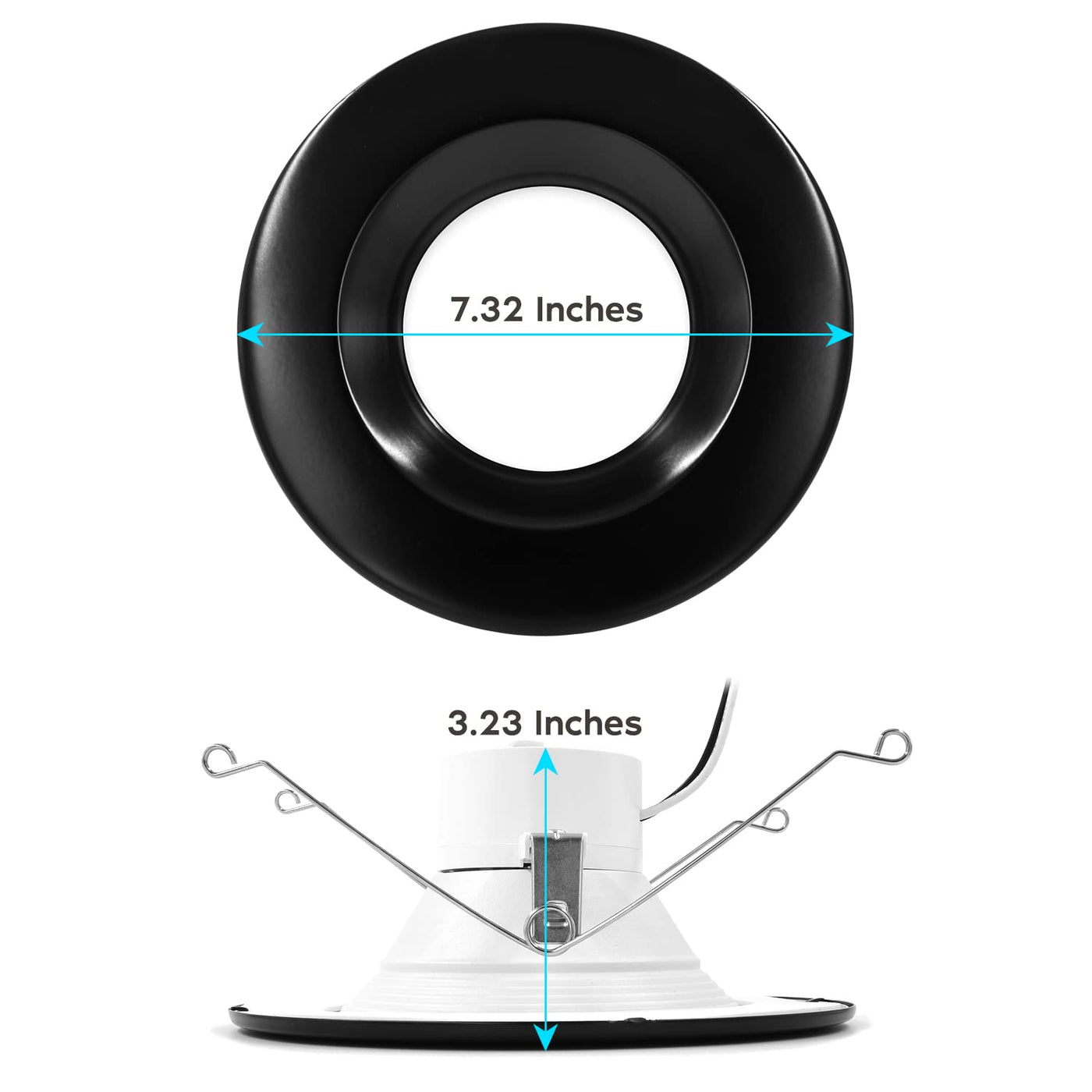 Each Luxrite LED recessed ceiling light features a lightweight design, making it easy to handle and install in standard 5 or 6 inch can housings. The installation process is straightforward; simply use the E26 adapter to screw in the lights and push the fixture into the housing with the metal tabs for a flush-to-ceiling finish. These lights are also wet location rated, allowing for indoor and outdoor use, including installation in areas such as soffits, eaves, and showers. With smooth dimming capabilities, the light output can be adjusted from 100% to 10%, providing flexibility to create a comfortable atmosphere.