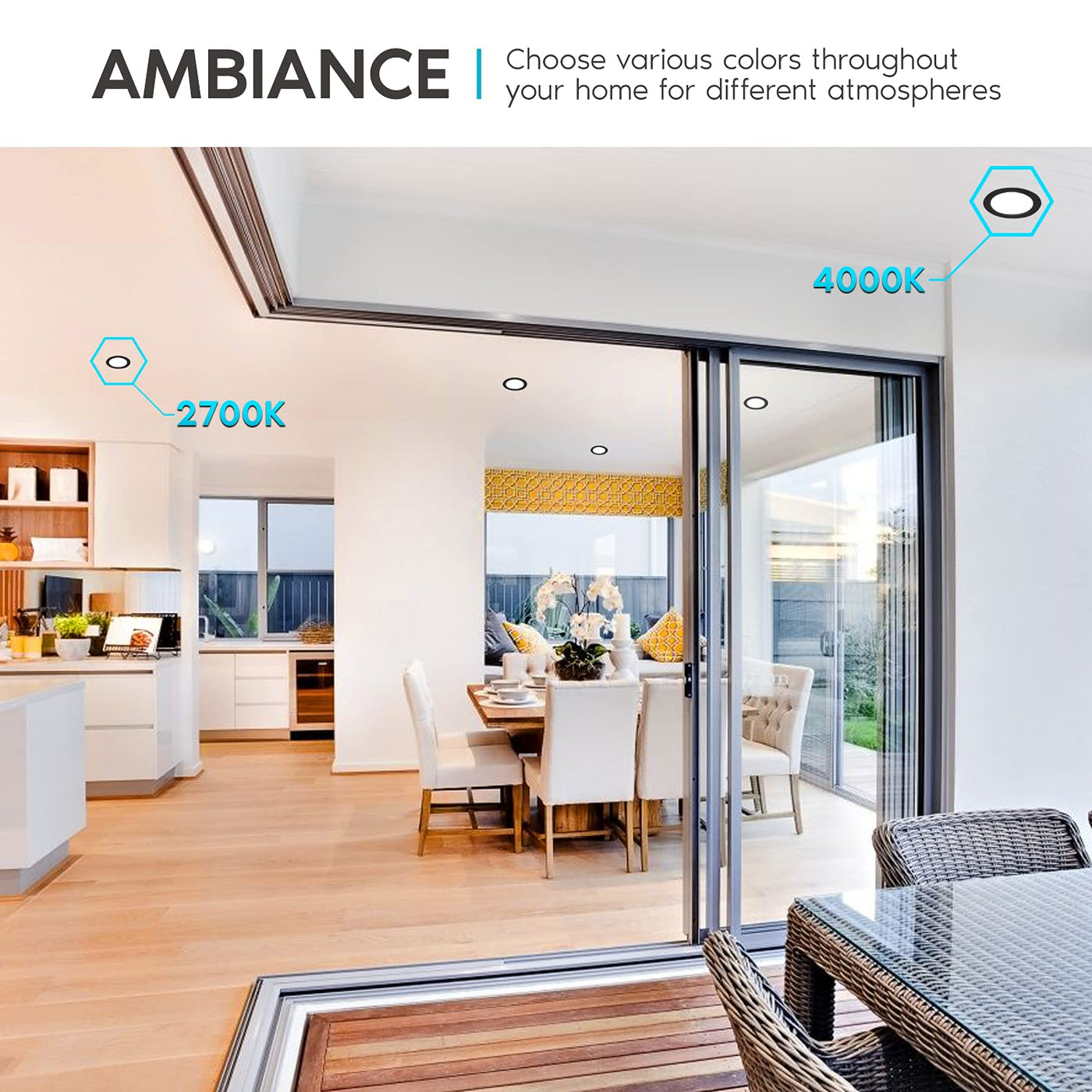 Dimmable: Adjust brightness smoothly from 100% to 10% without flickering, allowing for customizable lighting settings.