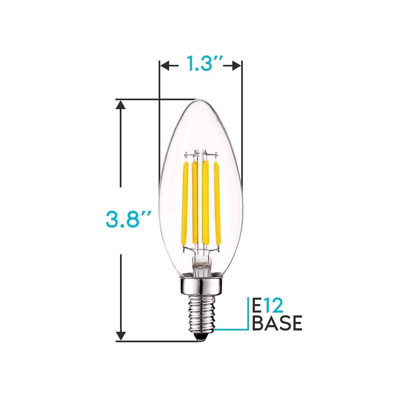 Q: What type of base do these bulbs have?A: These bulbs feature an E12 candelabra base, making them compatible with various decorative lighting fixtures, such as chandeliers and sconces.