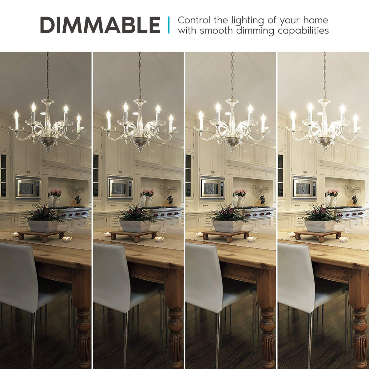Q: Are these bulbs dimmable?A: Yes, the LUXRITE Vintage Candelabra LED Bulbs are dimmable, allowing you to adjust the brightness from one hundred percent down to ten percent to create the desired atmosphere.