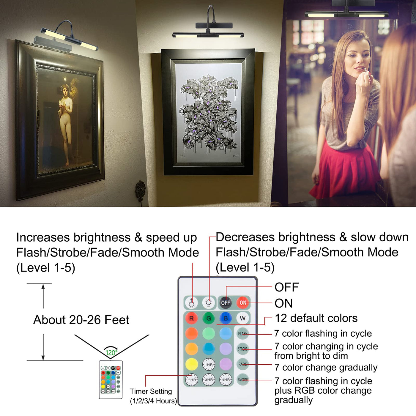 Luxsway Picture Lights Rechargeable,Painting Light For Picture With Aluminum Finish,Upgrade 12 Color Changing Art Lights With Ti