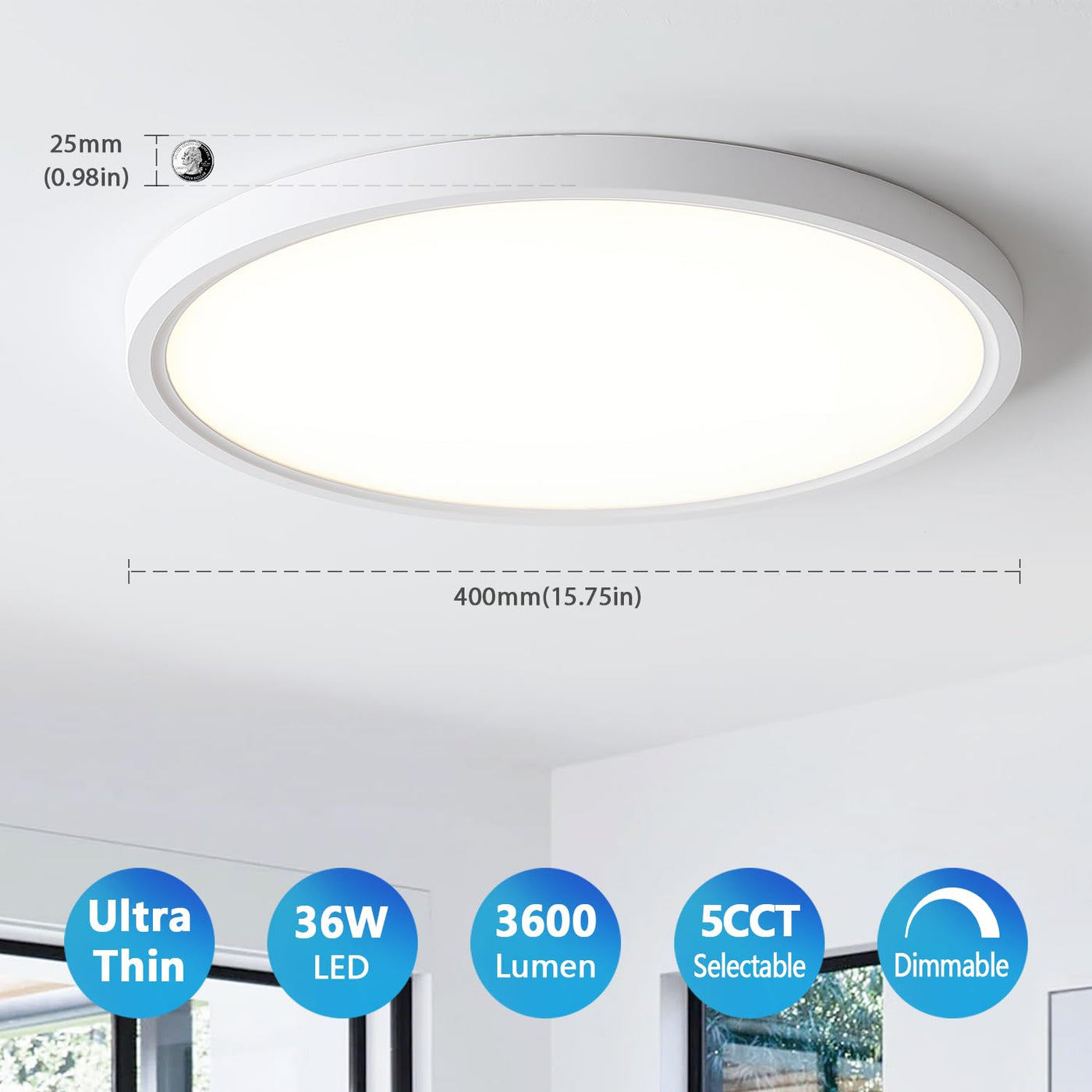 LVWIT LED Ceiling Light Flush Mount, 36W Dimmable, 15.8 Inch, Round, White, Model JM-FH400DL