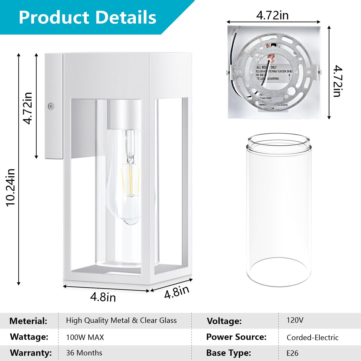 Modern Design & Stylish Appearance: Designed with a classic finished frame with a rectangle shape, adding an elegant and minimalist style to these outdoor wall lights. Equipped with clear glass shades, the exterior waterproof wall sconce creates a modern and stylish appearance to the wall mount lights. The high-quality tempered glass not only protects the bulb well but also transmits light to create a gentle and cozy atmosphere.