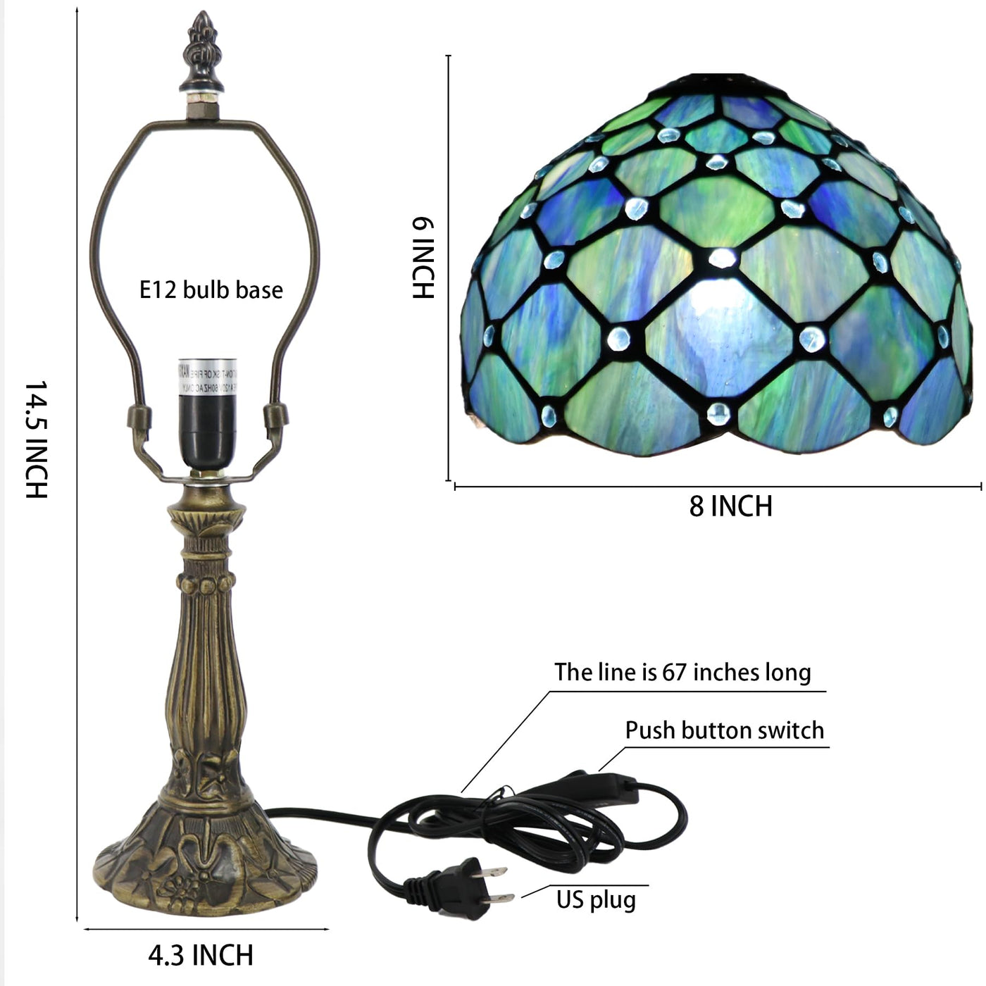Lxhcyou Small Tiffany Lamp Mini Accent Table Lamp Stained Glass Desk Memory Lamp Sympathy 8X14.5 Inch (Sea Blue Pearl Style)