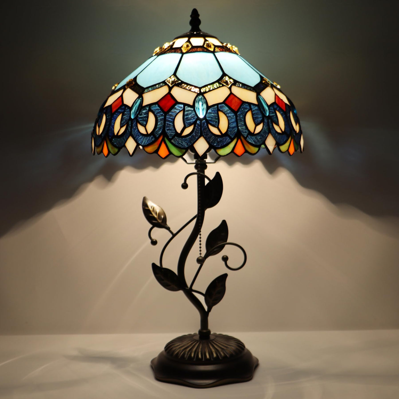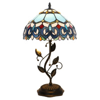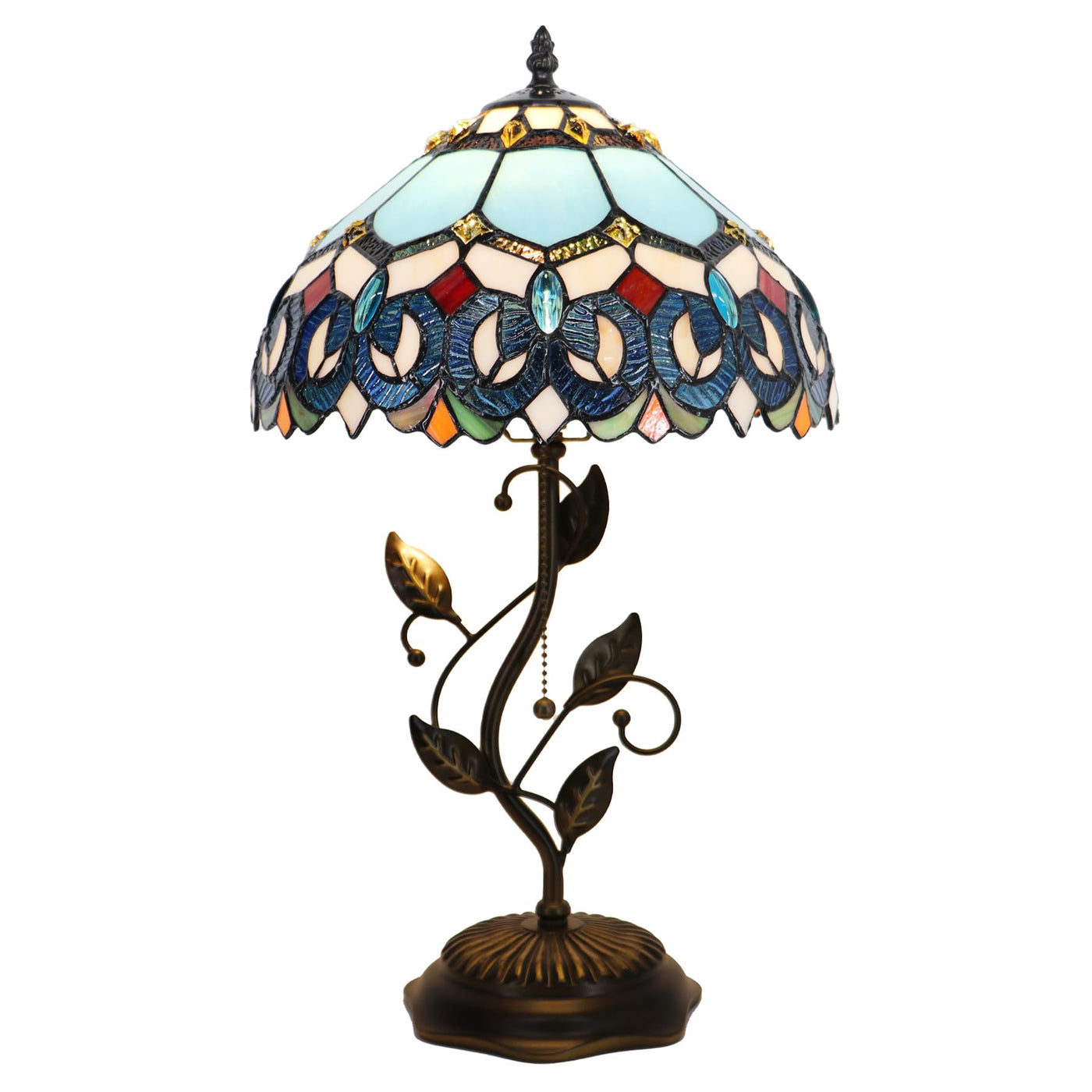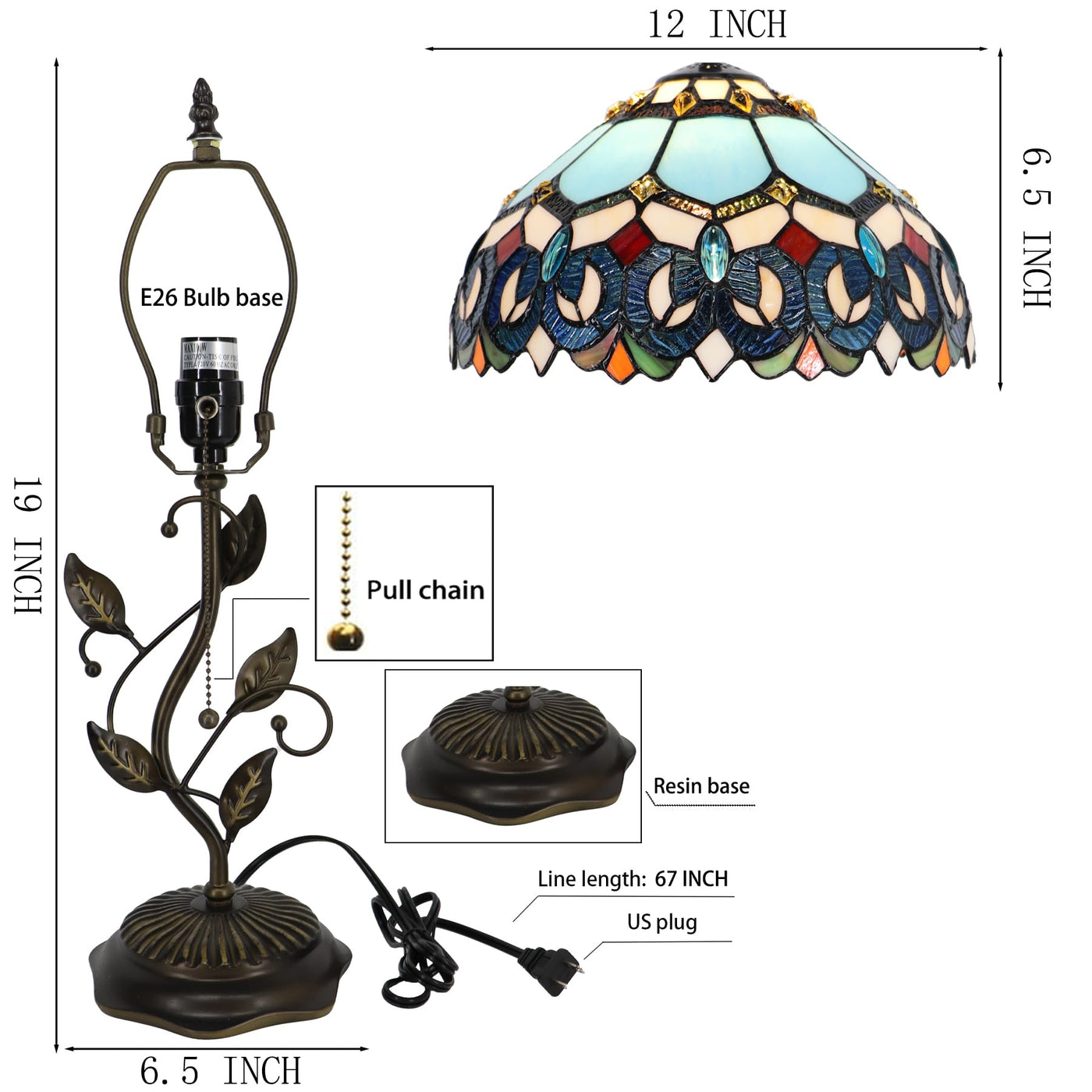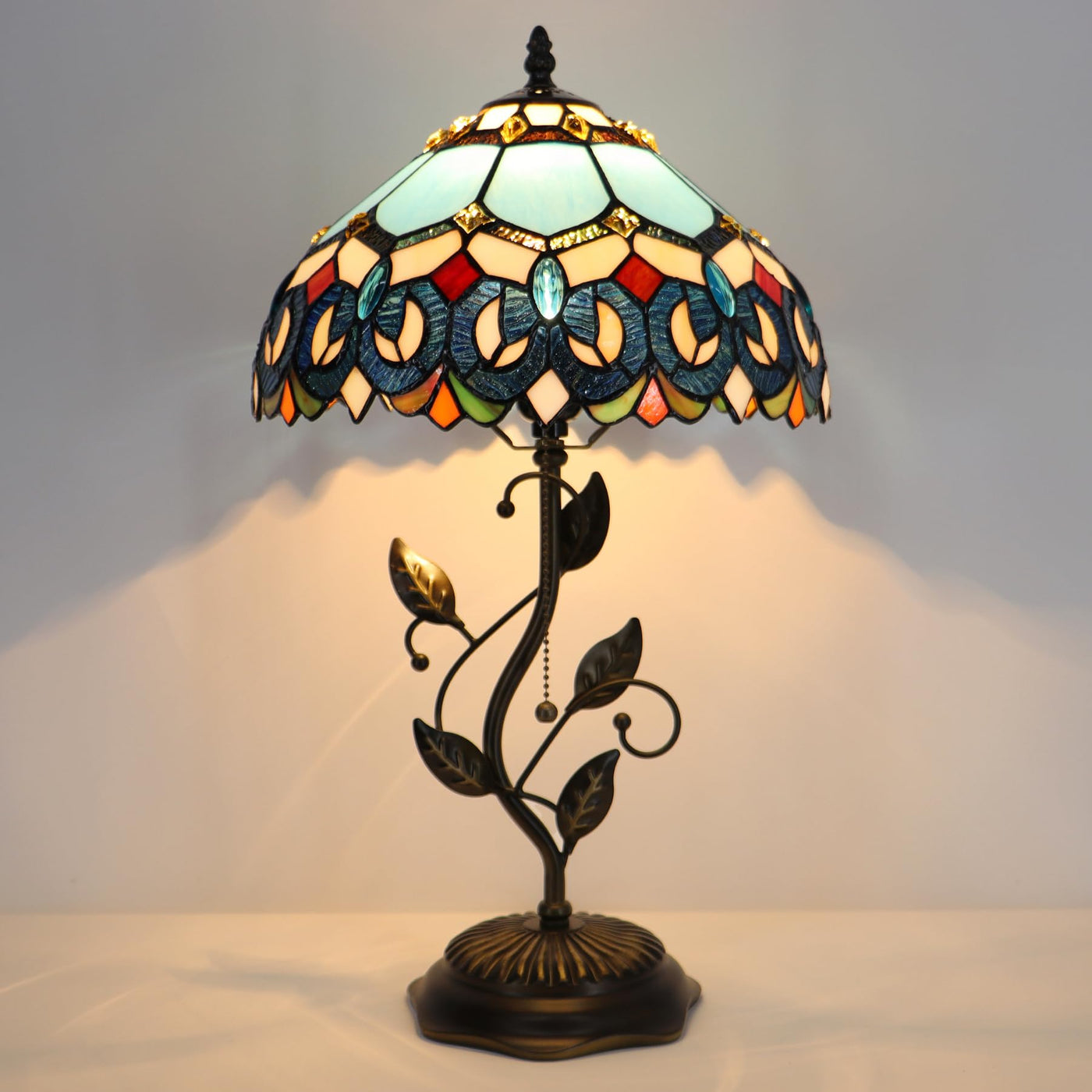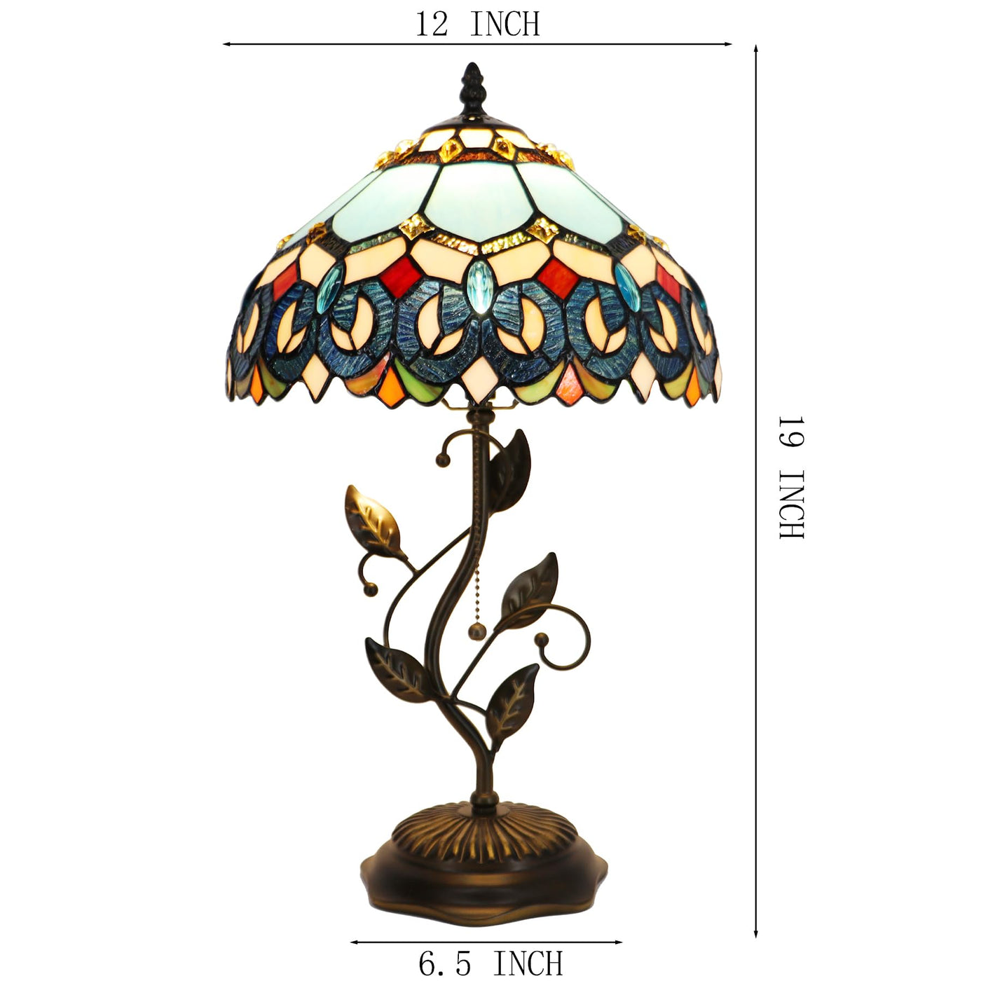 Lxhcyou Tiffany Table Lamp, Stained Glass Desk Light, W12H19 Inch, Metal Leaf Base (Baroque Style)