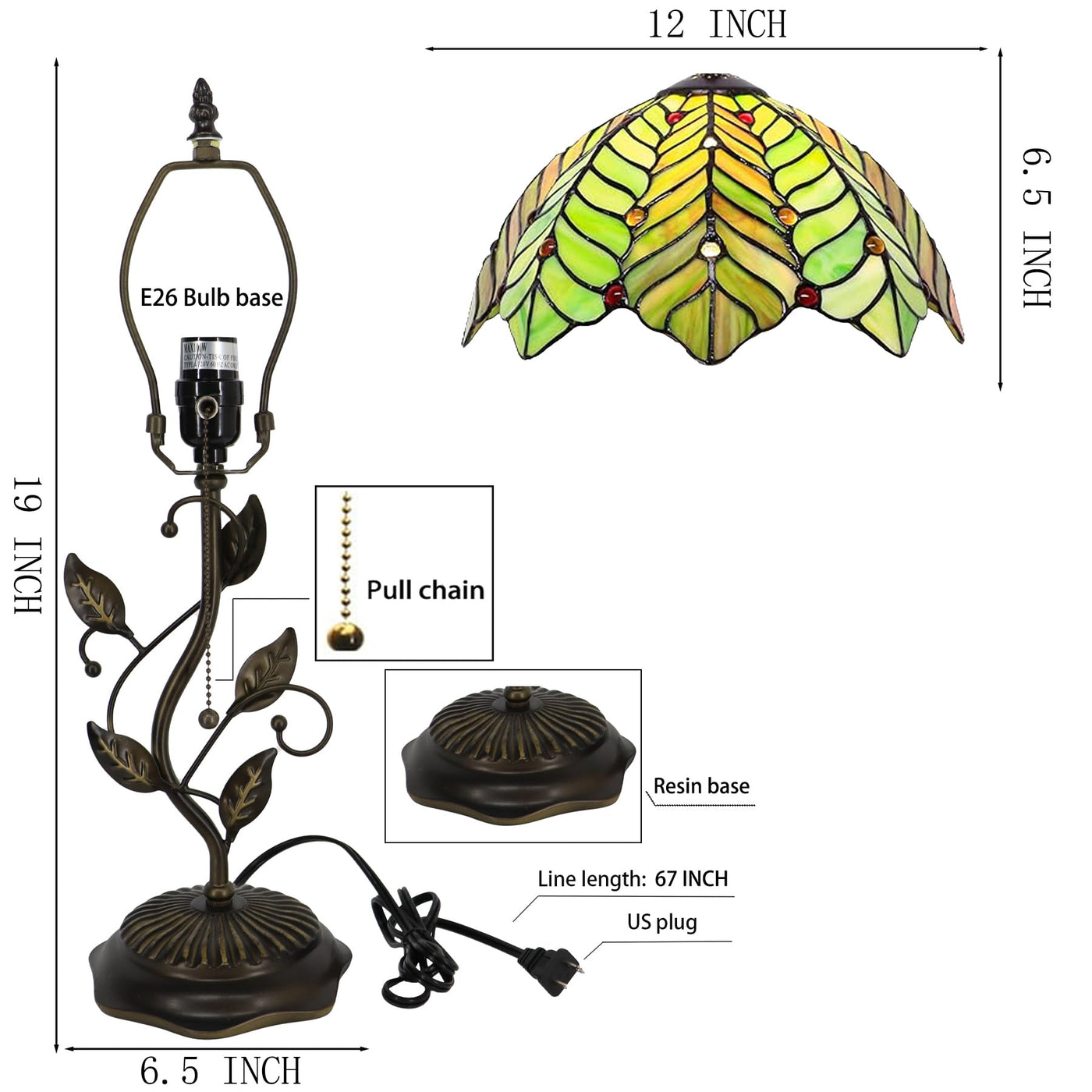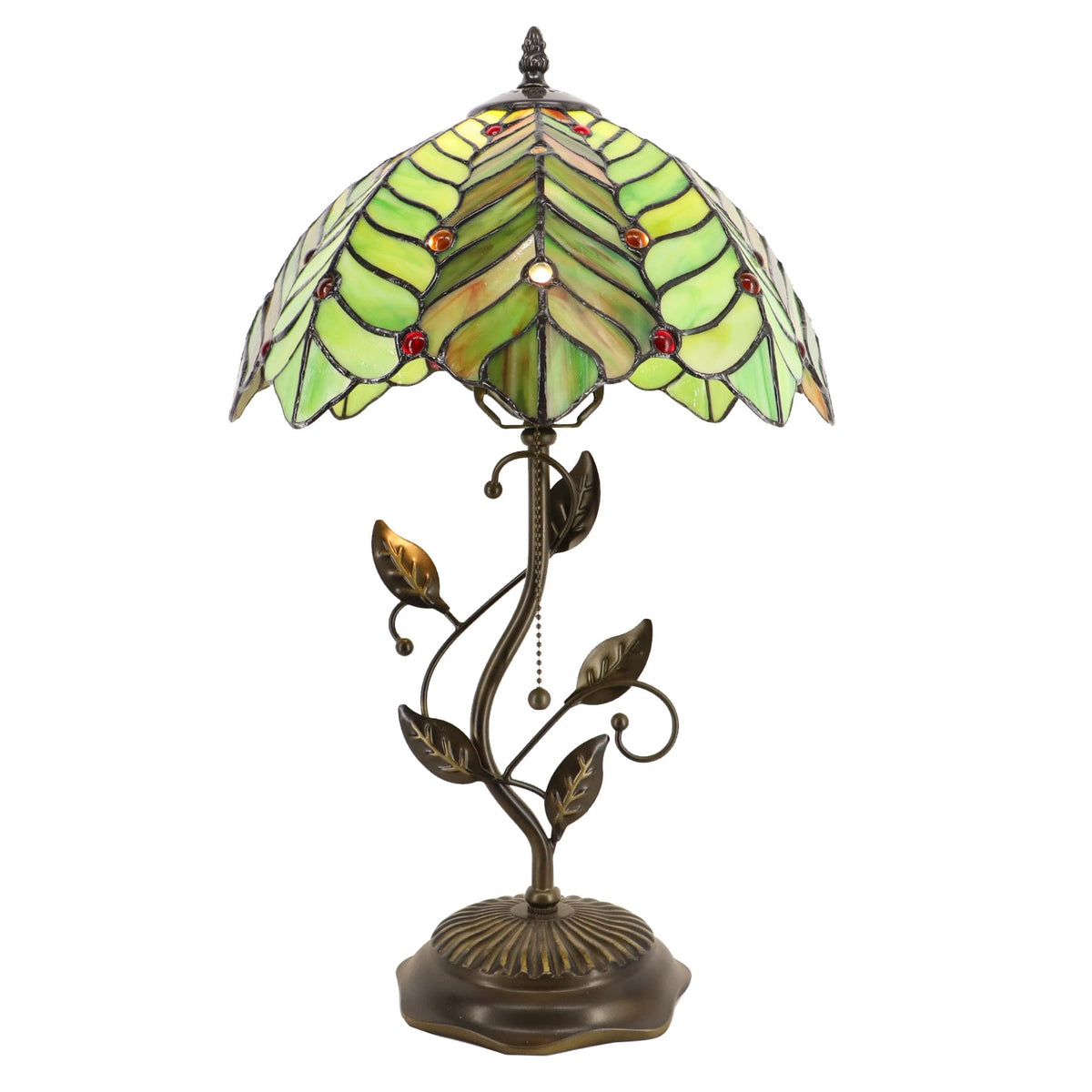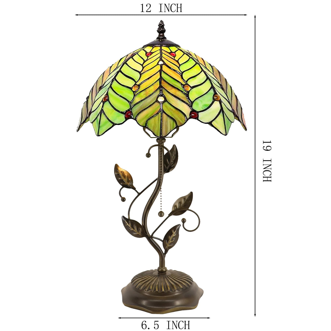 Lxhcyou Tiffany Table Lamp, Stained Glass Desk Light, W12H19 Inch, Metal Leaf Base (Brown Green Leaf)