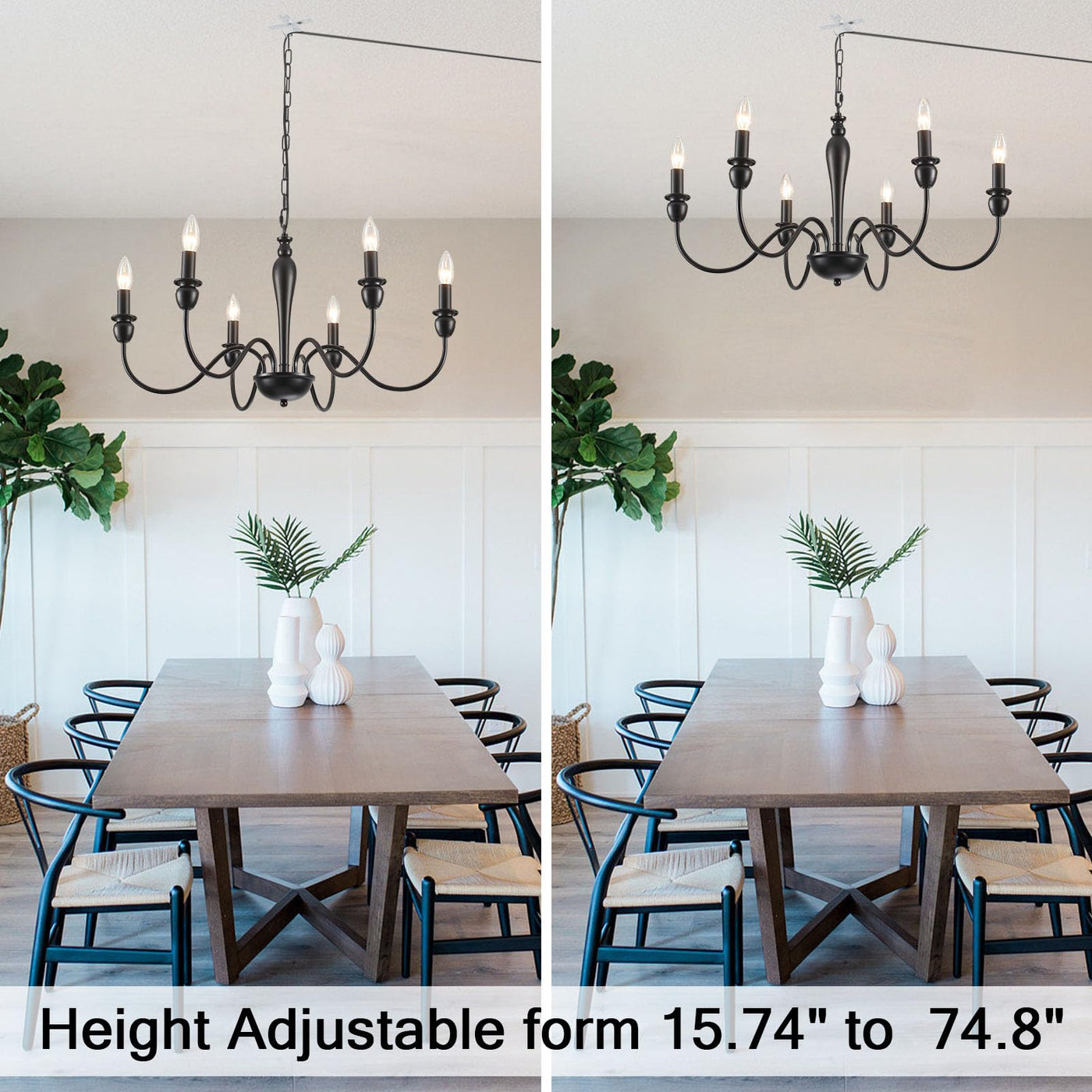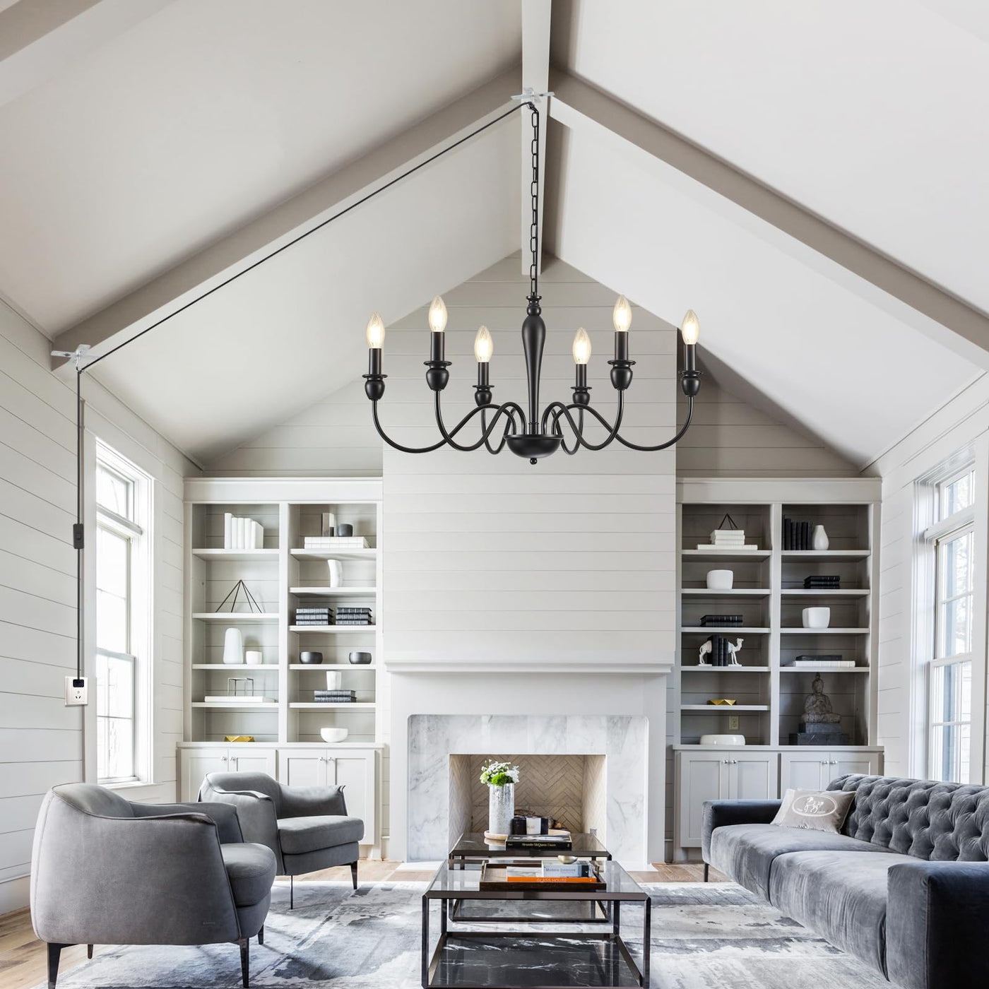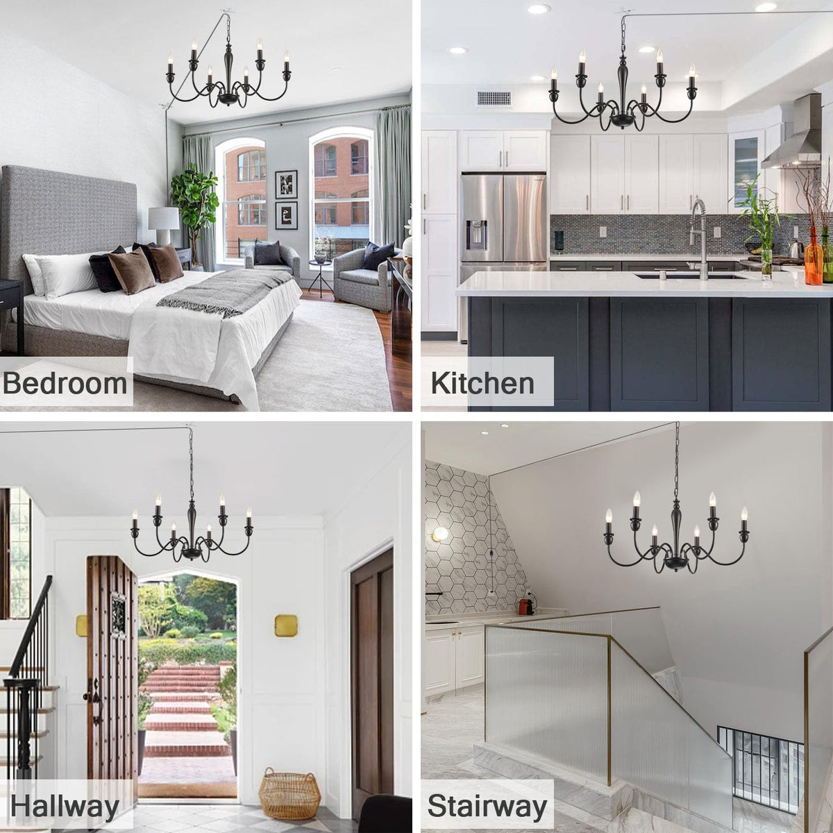 Lxwnyy Plug In Chandelier With Long Cord 15.1Ft, 6 Lights Farmhouse Light Fixtures Hanging Lights With Plug In Cord, Black Plug